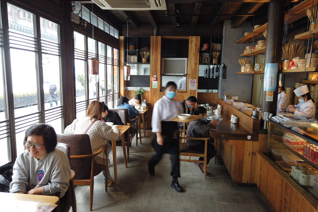 还有完没完,直到肚子提抗议,这才想起我们还未午餐,时间已是13:40,当断则断,ting意下就桥西头的话江南,走进里面,一处水乡民居的面子,里子却是现代连锁餐饮的模式。