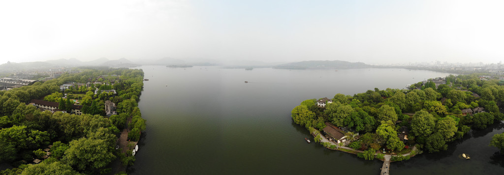 早餐依旧酒店自助,餐后又在顶楼放飞了无人机,这次的西湖,所见应是绿肥红瘦。