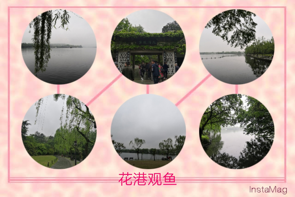 花港观鱼 我行走在前,沿里西湖的南岸,ping、ting和ying,落在后面,我没有看到湖中的游鱼,而后面的三位,挤进土味人群,据说是看见辣么大的鱼了,而且不到情急是不会跟上的,让我好一阵等待。