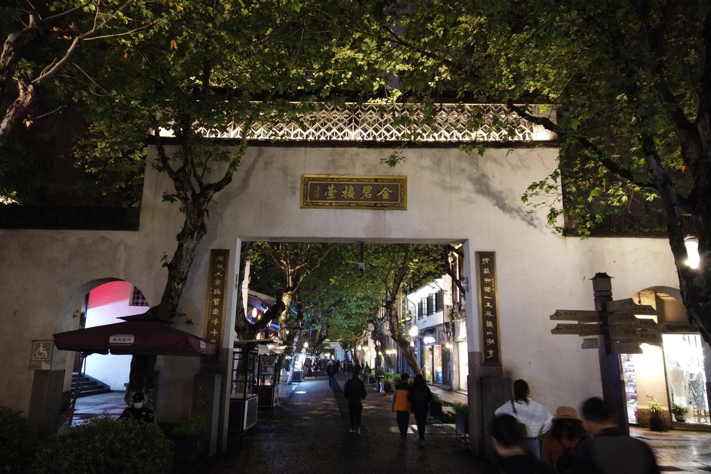 桥的另一端,连接着西湖天地,这是一处汇集了众多知名餐厅、咖啡吧、会馆、娱乐场地的所在,外婆家、涌金楼、蟹家大院、马迭尔、初·居食屋、小隐茶酒年代,酒池肉林,钟鸣鼎食,期间洋溢着的奢靡之风,时时处处告诉我们这里就是西湖豪横的新天地。