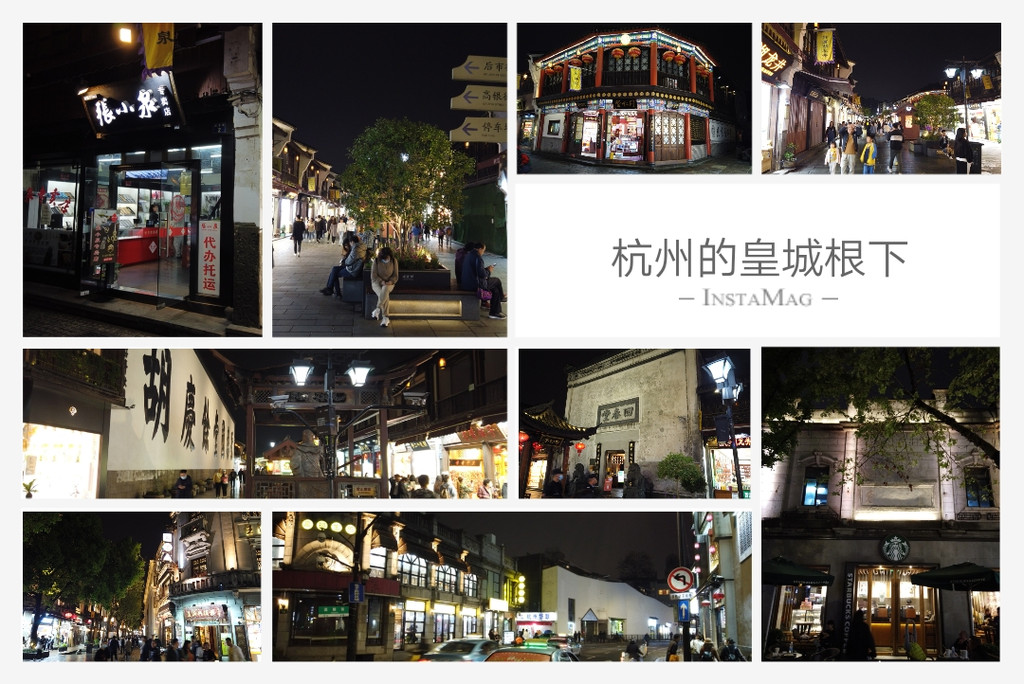 大概20:30,我们已走在河坊街的仿古商业步行街上,河坊街自古就是杭州的繁华地段,最早最文化的皇城根下,这里遍布各种特色小吃,众多特产店、老字号张灯结彩招财进宝。我们犹如清明上河图,混迹人流之中,路经的有张小泉专卖店、胡庆余堂、同仁堂、回春堂、王润兴酒楼、雪舫蒋,在河坊街与南宋御街交汇处,一栋老屋住着一个星巴克,一栋旧宅贩卖的却是万隆庄火腿。