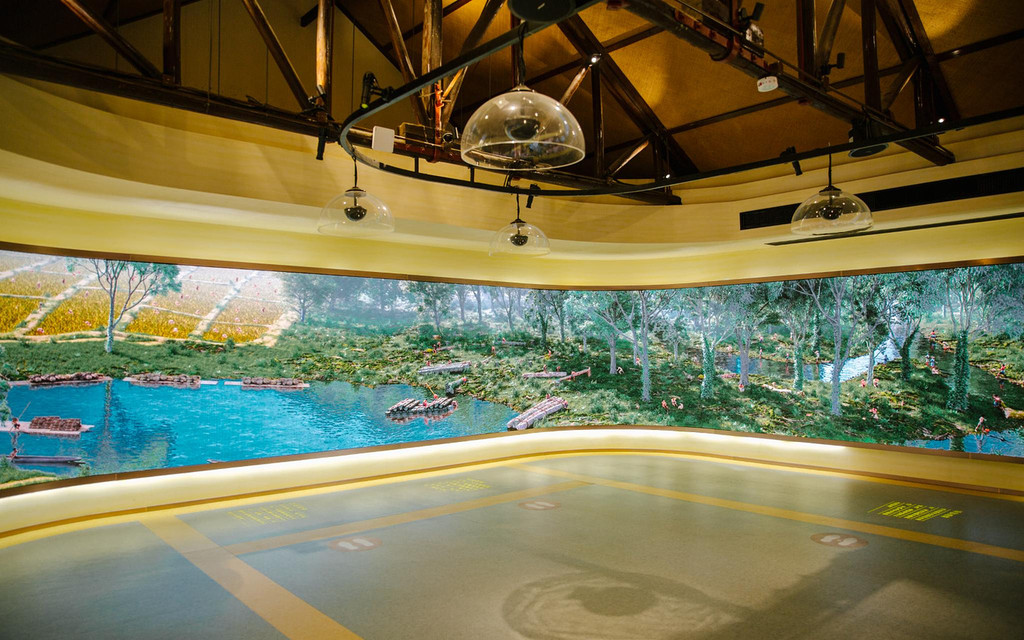 良渚古城数智体验馆同样也是不得不去打卡的一项体验,从“神之王国”开场,介绍了良渚王城的整体格局;到展示了良渚大地人水共生和谐画面的“人水家园”50米数字长卷,古时“郊野渔猎”和“瑶山祭祀”的故事就这样别开生面的娓娓道来,尽展水乡先民的生活之美、劳作之忙、百工之盛!