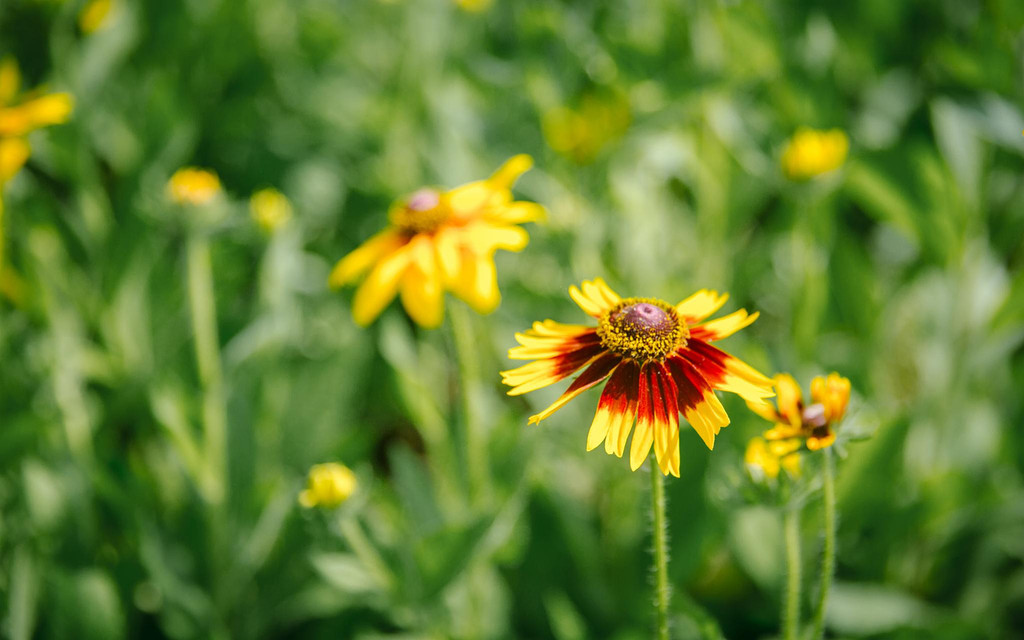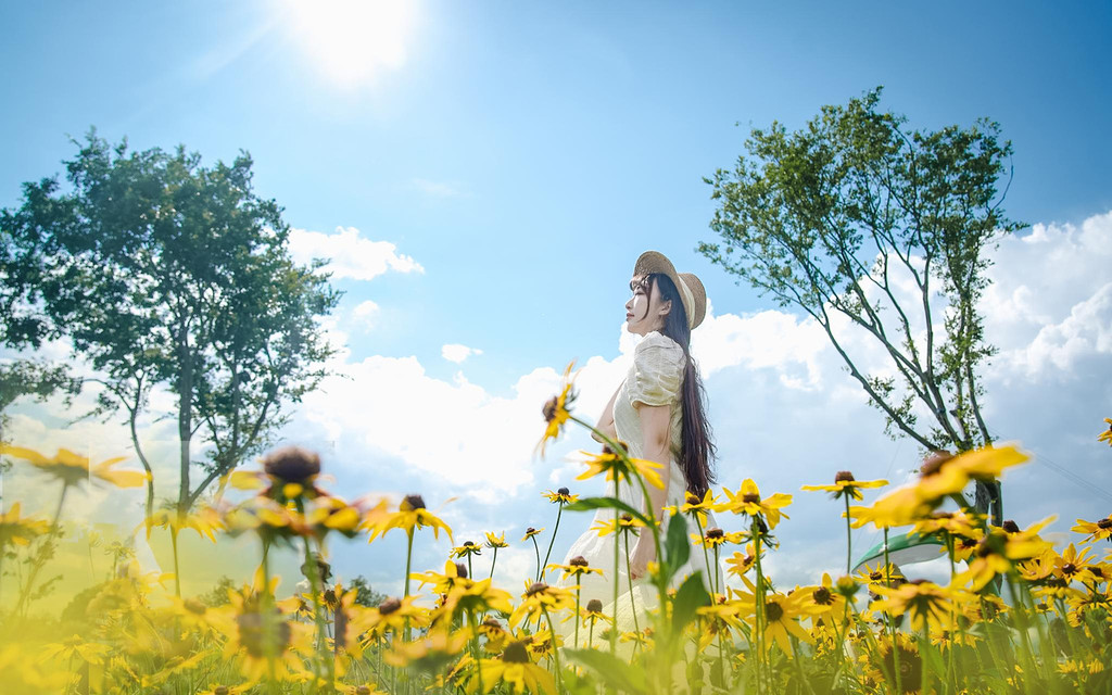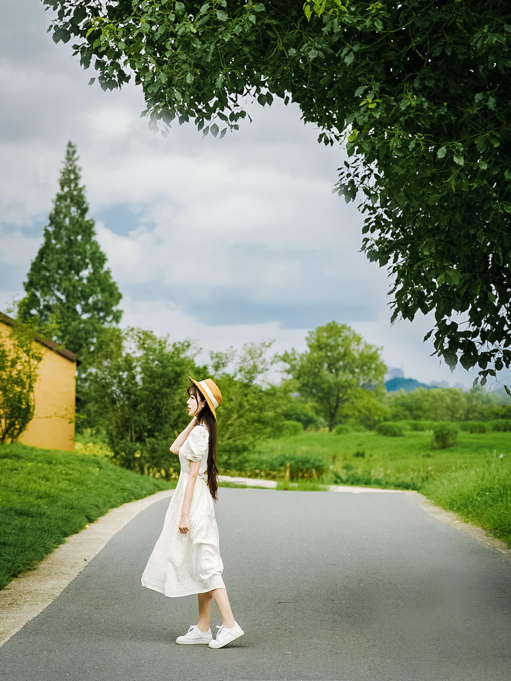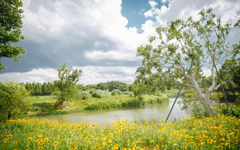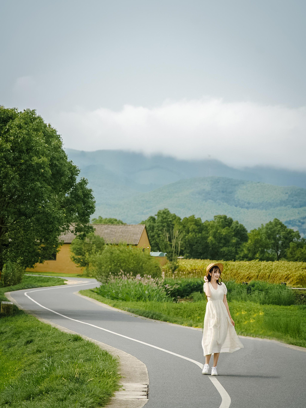 这个季节的良渚,是一望无垠的绿,和各式各样的花海,不远处的黄色花也开得正好!蓝天白云与翠绿色的山坡,这里是宫崎骏漫画里的夏天无疑了!