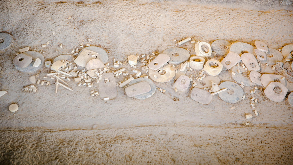 继续往前的反山王陵则发现于1986年,坐落于内城西北部一座高出地表6米的人工土台上,11座墓葬按南北两排分布排开,这里也是良渚王的安息之所。出土物件包括玉、石、陶、象牙、嵌玉漆器等珍贵文物1200件组,其随葬品数量之多,质量之精,规格之高,见所未见,更是被称为目前已知等级最高的良渚文化基地。