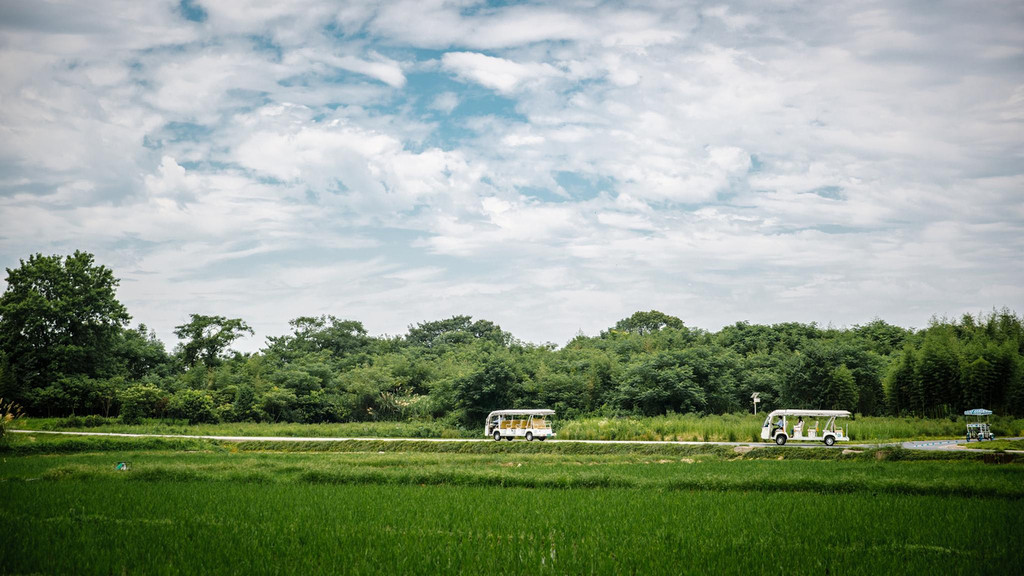 入园后,大家伙可全程乘坐电瓶车游览,沿途有陆城门、南城墙、钟家港、东城墙、雉山、莫角山、反山、凤山、大观山等多个停靠站点,一路飞驰,更是能近距离感受良渚古城时期的水乡泽国风貌~