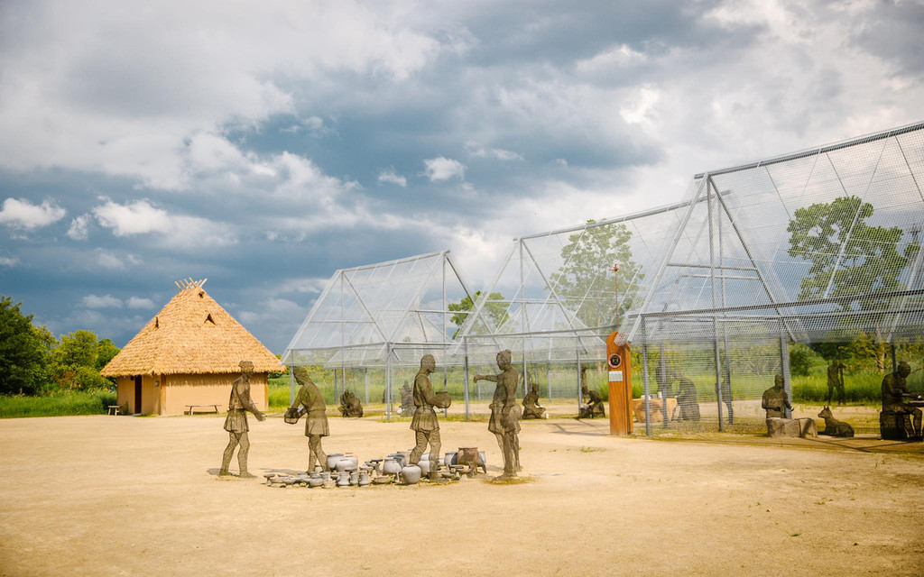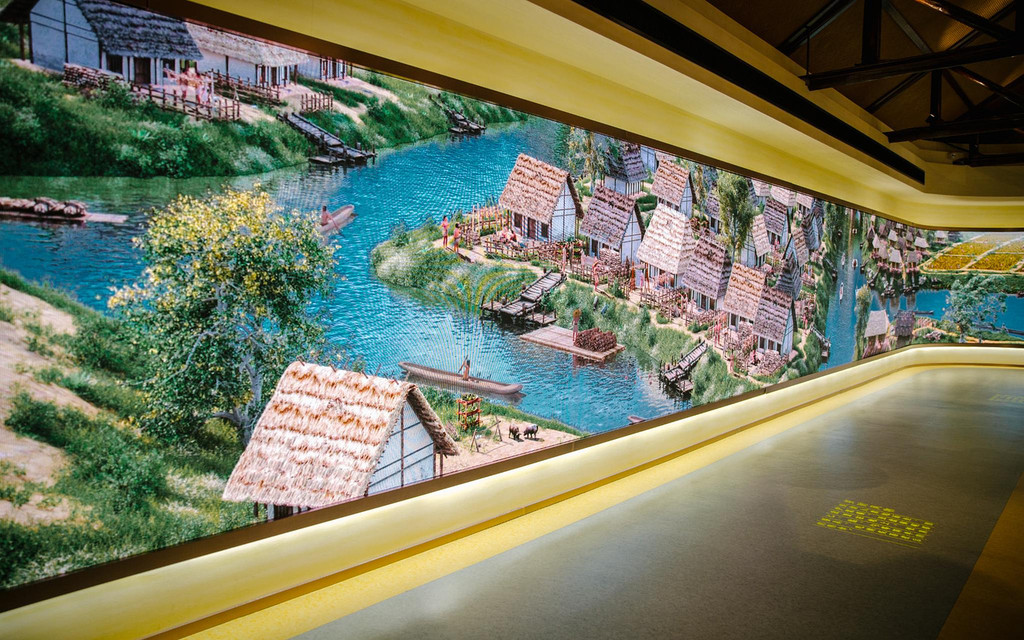 426个良渚人物栩栩如生,活灵活现,生动又形象的展现了五千年前良渚人的一天。带上VR互动体验装置,这里的实景VR影像“本色良渚”还能穿越五千年时空,身临其境的了解良渚古城遗址的独特风貌,“亲眼”目睹当时良渚王国的文明盛景!