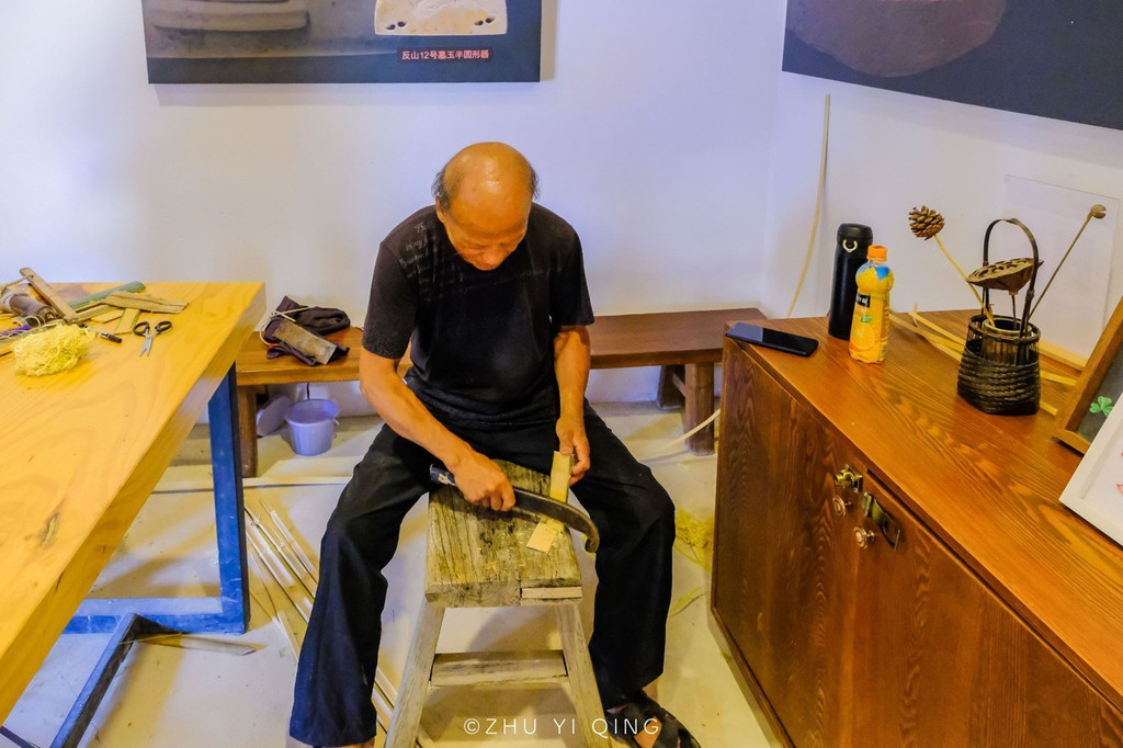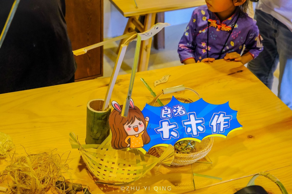 在体验区还能享受做一回木匠,制作各种木制品和竹编工艺品,看我就在师傅的教导下,做了个竹编青蛙。