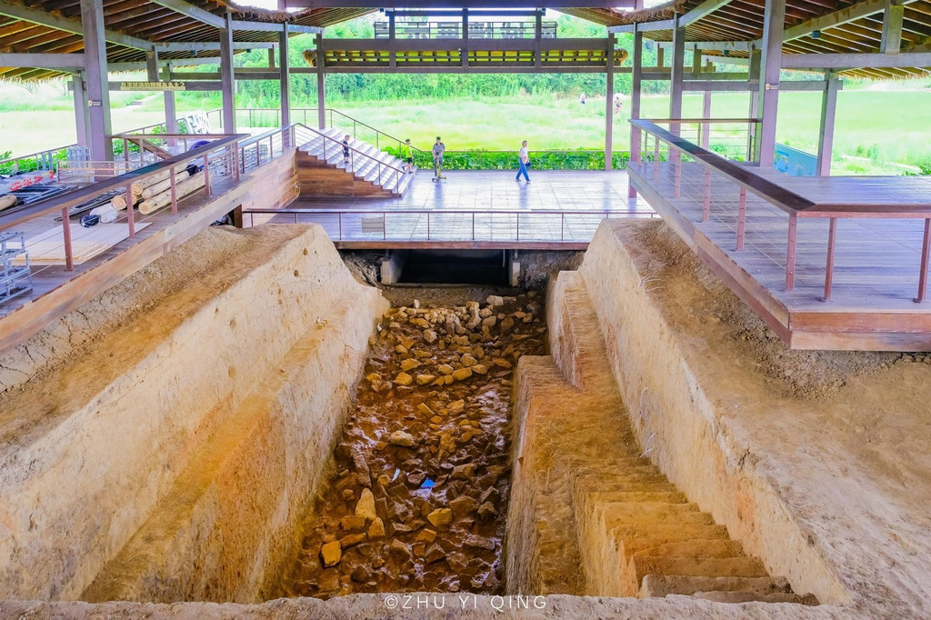 来到遗址公园中的南城墙遗址,历史的味道扑面而来,伴随着的是眼前的震惊。4米高的城墙将良渚古城展现在我们面前,古城只有一个陆上的城门,但却有八个水门,如此先进的设计,让古中国的文明展现的淋漓尽致。这5000年来,无论古城经历了多少风雨,最后都在这里留下了惊艳的一笔。