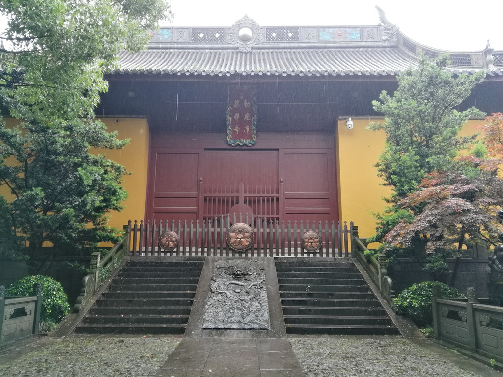 2020年5月30日,我专程前往净慈寺参观,净慈寺位于杭州西湖南岸的南屏山慧日峰下,雷峰塔对面,近城临湖,这里峰峦耸秀,怪石玲珑,松柏翠绿,山色空濛,古刹名山相互映辉,是西湖历史上四大古刹之一,中国著名寺院之一。因为寺内钟声洪亮,所以"南屏晚钟"成为"西湖十景"之一,是公元954年五代吴越国钱弘俶为高僧永明禅师而建,原名永明禅院,宋太宗改为“寿宁禅院”,高宗绍兴十九年(1149)改称“净慈报恩光孝禅寺”,并建造了五百罗汉堂,是其鼎盛时期,人文荟萃,儒释交融,与灵隐寺并称南北两寺之最。南宋时净慈寺与余杭径山万寿寺、杭州灵隐寺、宁波天童寺、阿育王寺被评定为“江南五山十刹”之五山之列。净慈寺历经屡毁屡建,现在的寺宇、山门、钟楼、后殿、运木古井和济公殿,都是二十世纪八十年代重建的。