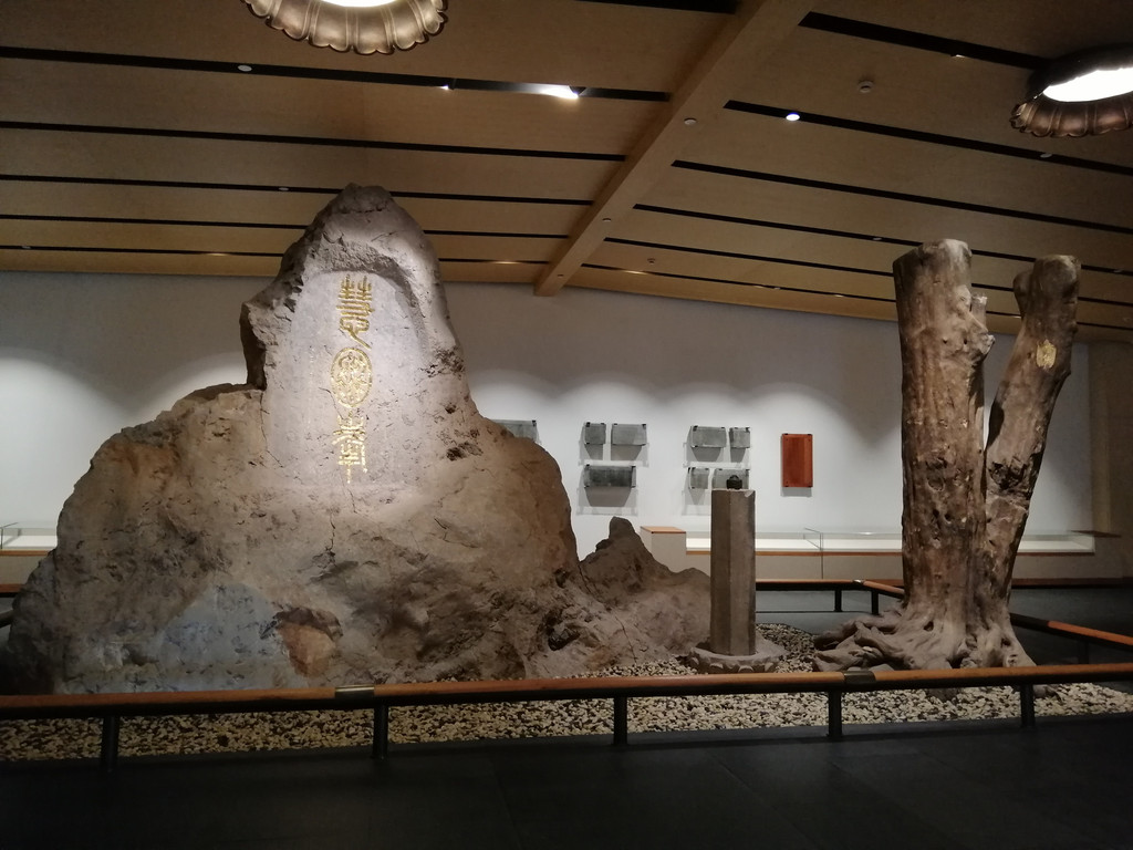 净慈寺中轴线上的最高处为释迦殿,是一座三重檐歇山顶建筑。释迦殿分地上地下两层,地下为净慈寺艺术馆,艺术馆入口有巨幅佛像浮雕。艺术馆的展厅中央,立着一块古石,据《净慈寺志》记载,南宋绍兴丁丑年(1157年),南宋大将陈思恭在峰间採一石,刻上了“慧日峰”三字。后来,因历史变迁“慧日峰”刻石掩于山体之中,不为世人所知。直到2007年,在重建释迦殿开挖地基时发现了“慧日峰”刻石,为保护刻石,寺院将释迦殿于原址整体向南移13米,自此“慧日峰”以全新面貌重现世间,就保留在展厅现在的位置。南屏山间奇石众多,历代石刻浩繁,有天园、莲花洞、石佛洞,还有少林岩、寰中天室、登净域等,千百年来,列于南屏山间,俯视着西湖,陪伴着净慈寺这座古刹。