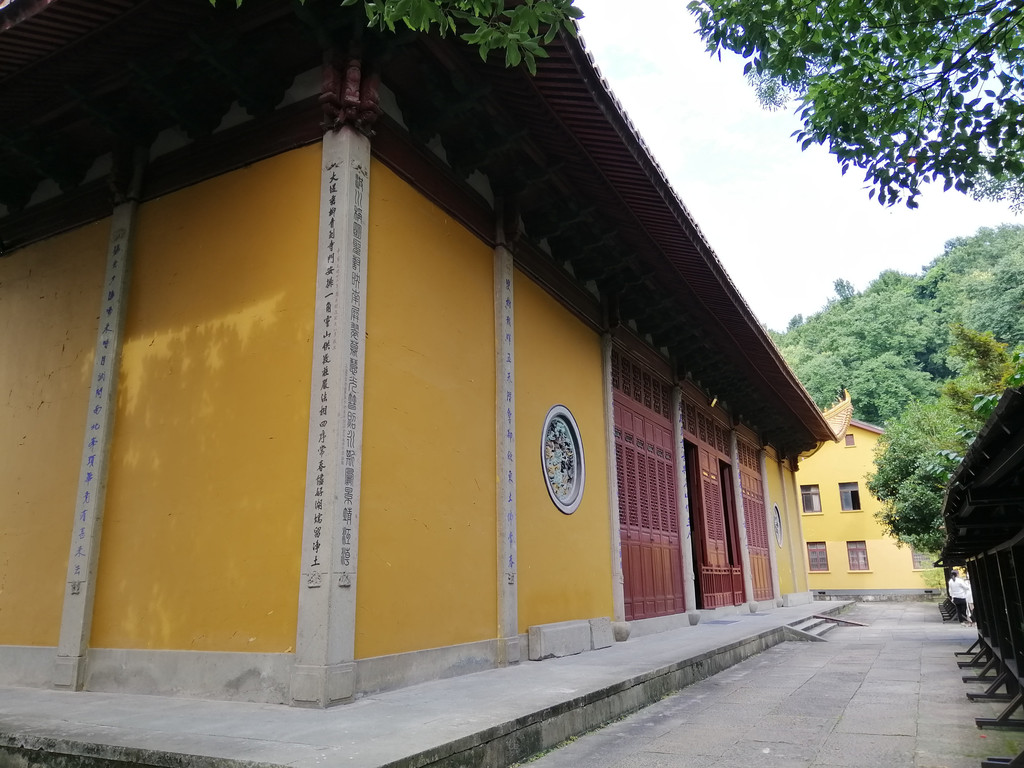 净慈寺山门上的匾额是竖着的,这与一般寺庙有所不同。我们通常说的匾额是有区别的,横者为匾竖者为额。凡是山门挂竖额的寺院都与皇帝有一定关系。清康熙三十八年(1699)御书“净慈寺”额。前后几经兴衰,至今已逾千年历史。现在净寺的门额是大清乾隆十六年(1751)弘历南巡时为净寺所题的“敕建净慈禅寺”。寺庙山门的正大门一般情况下是不开的,香客必须从侧门进院,然后从后门出入金刚殿。净慈寺也称净寺,占地面积近二百亩,建筑面积三万多平方米。