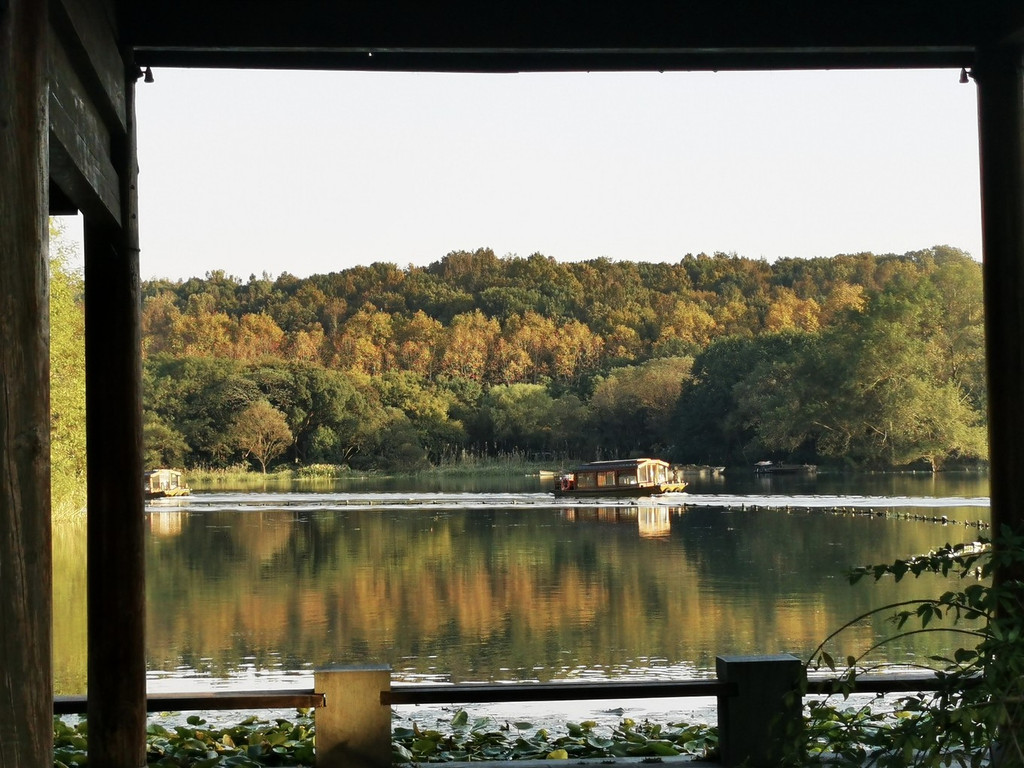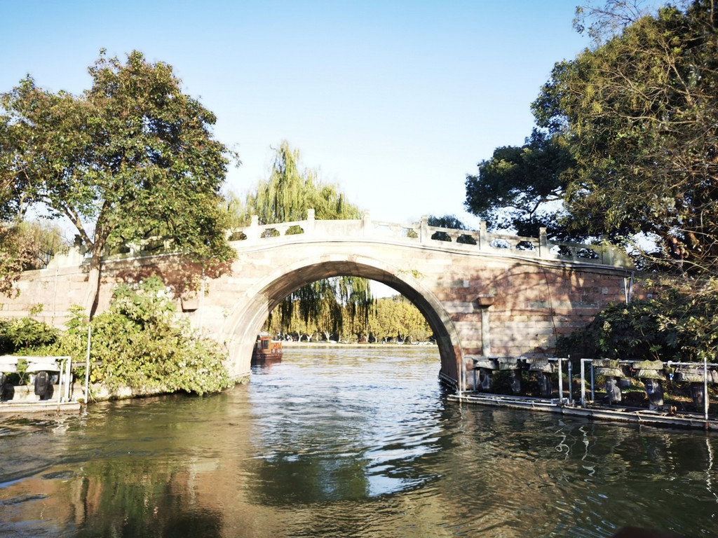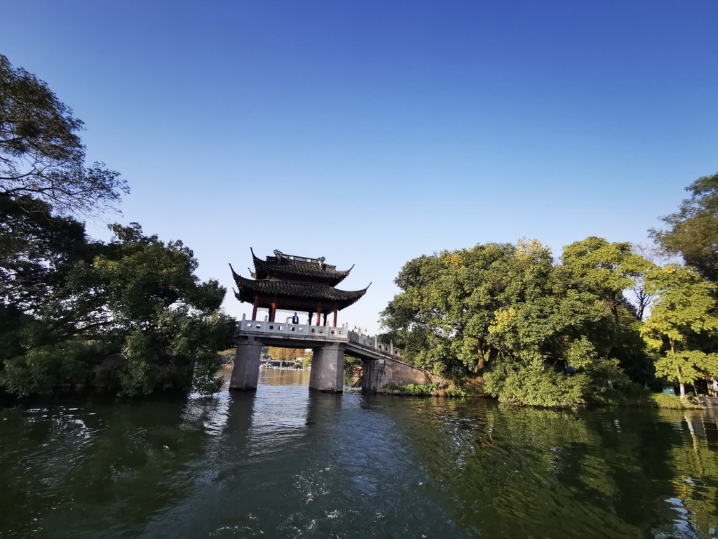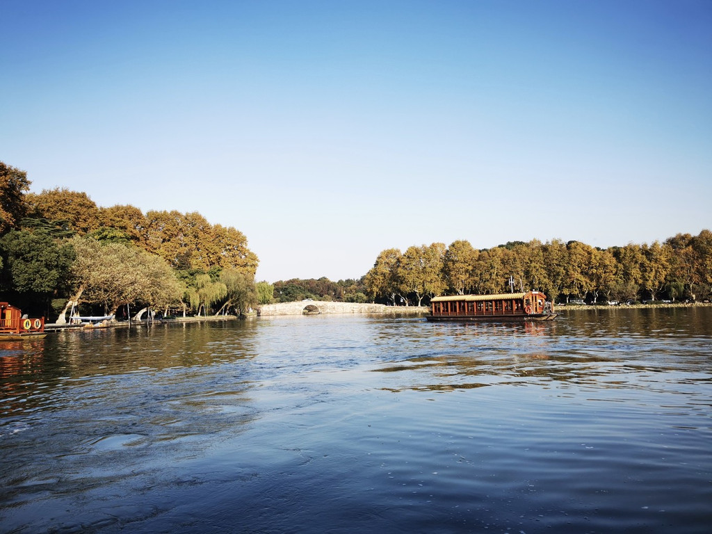 也可以乘坐画舫船,体会古代香客乘坐小船上茅家埠码头,湖中乘船又是不一样的视界感,