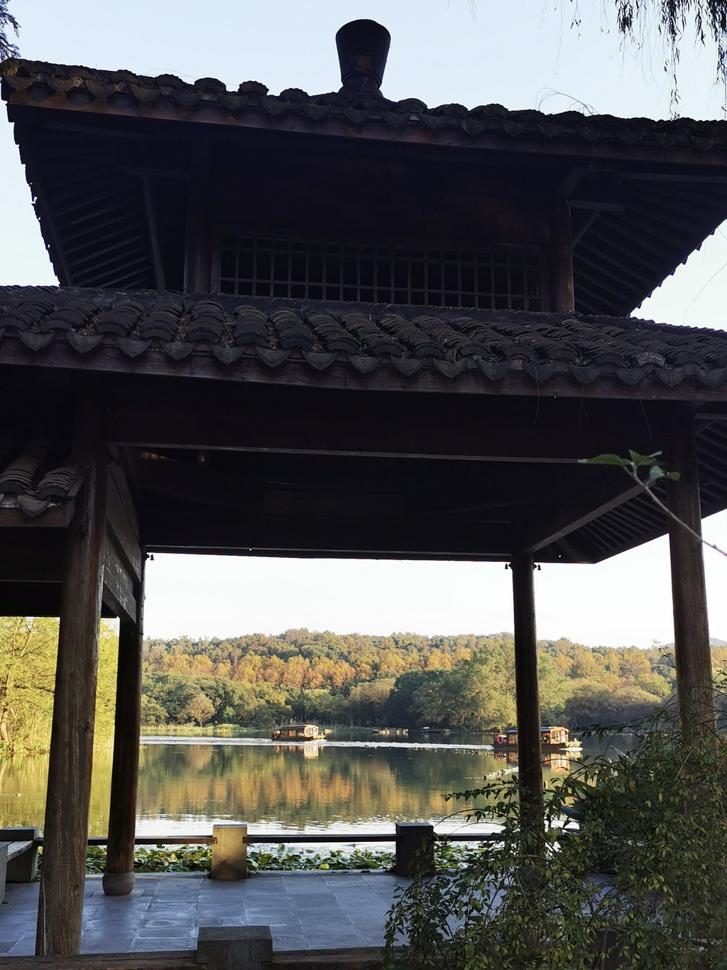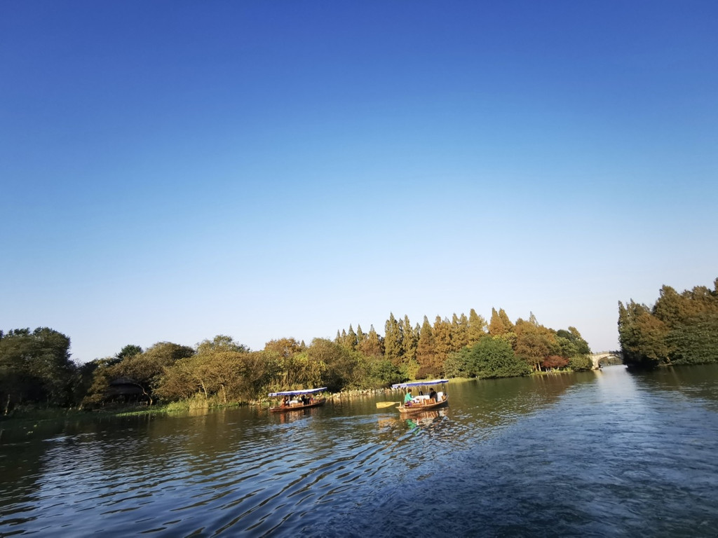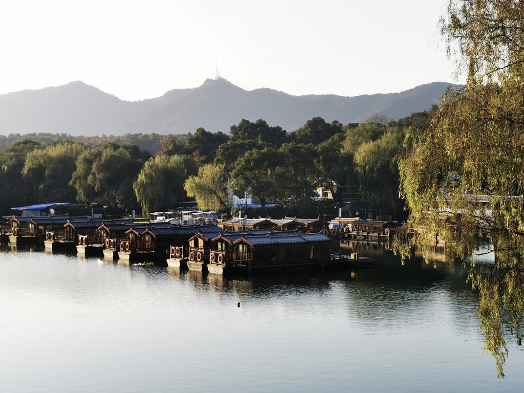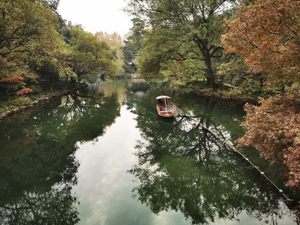 也可以乘坐画舫船,体会古代香客乘坐小船上茅家埠码头,湖中乘船又是不一样的视界感,