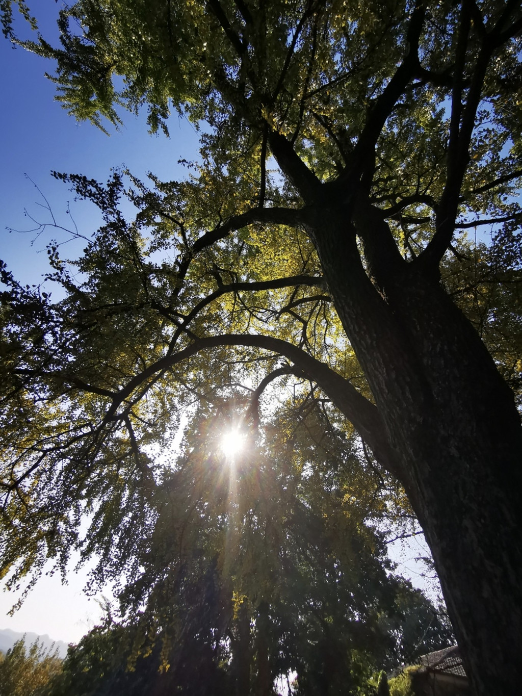 夕霞小筑有几株百年的银杏树