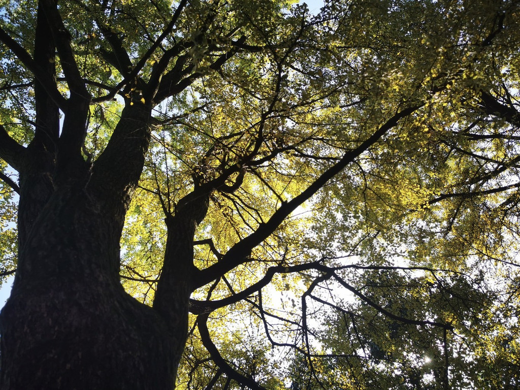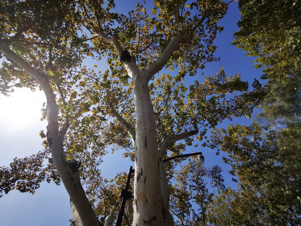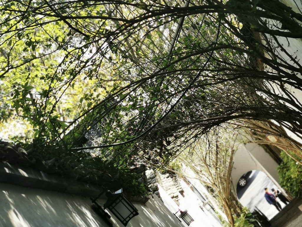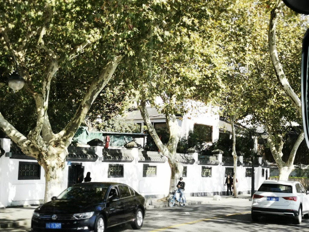 斑驳陆离的光影透过高大的梧桐树渗透