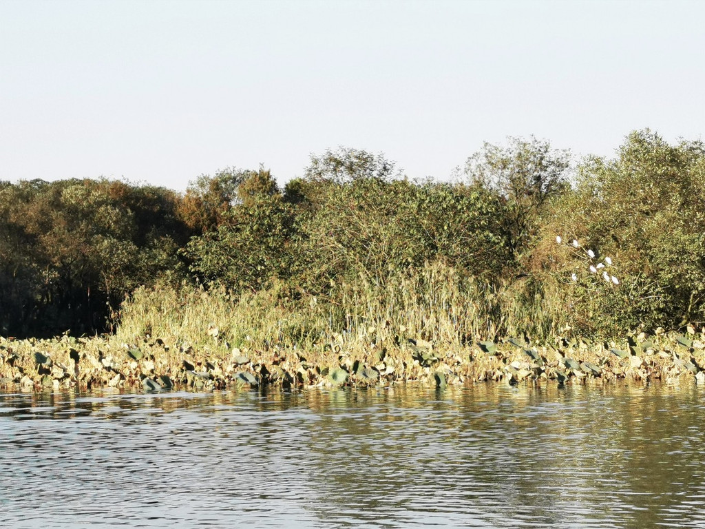 静谧空间的水域,有不少白鹭停在树丛中,