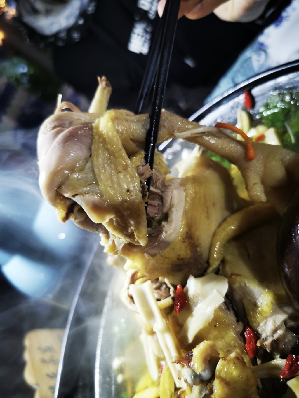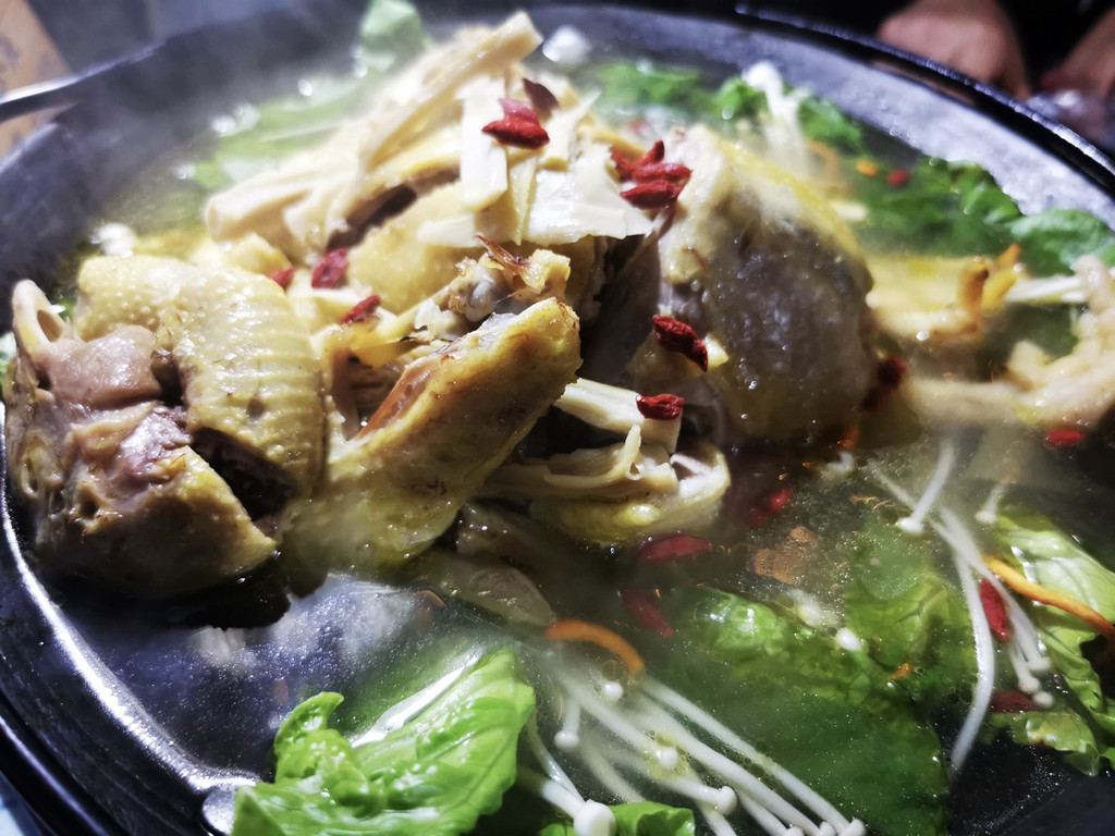 喜欢的还是店家的土鸡煲,听老板娘说了他们的土鸡吧,是放养在山后的,所以说那个鸡特别的鲜美,肉质也非常紧致。