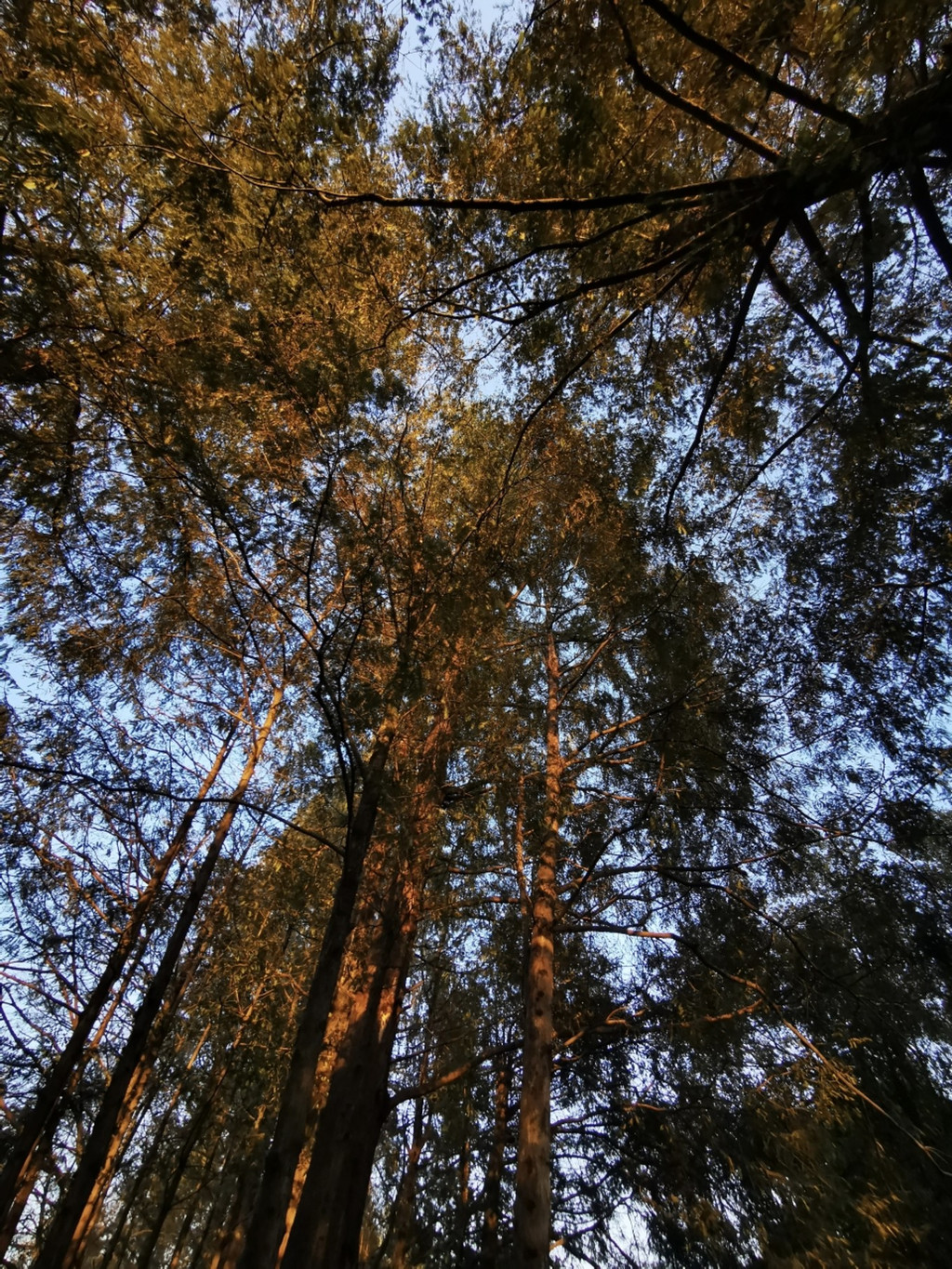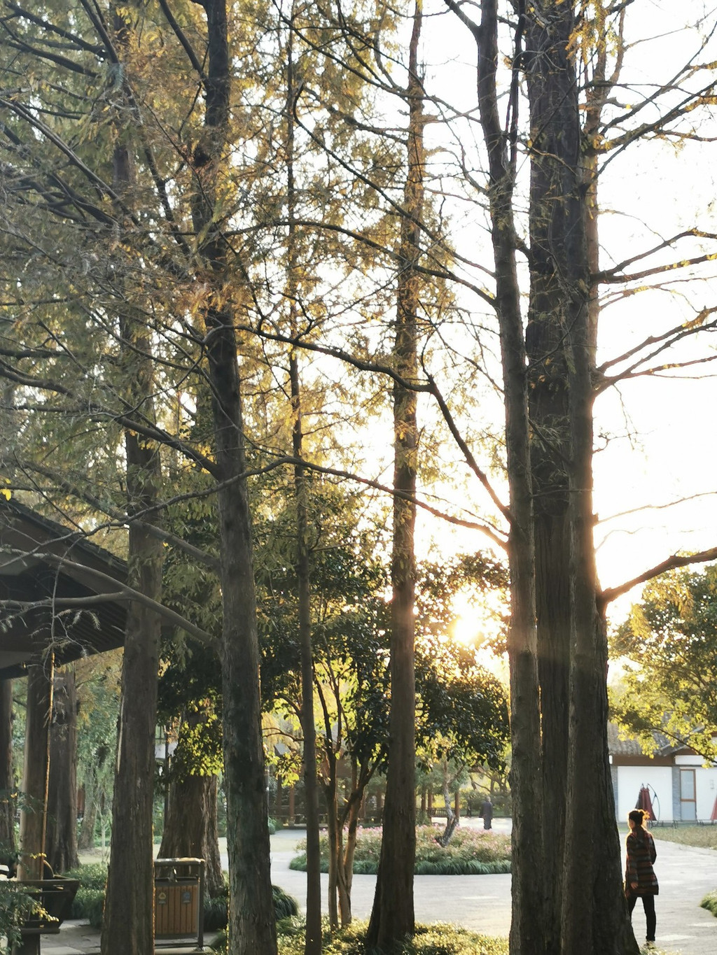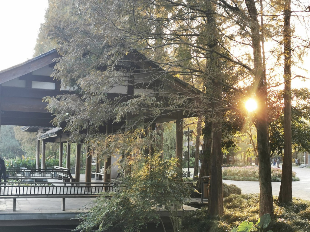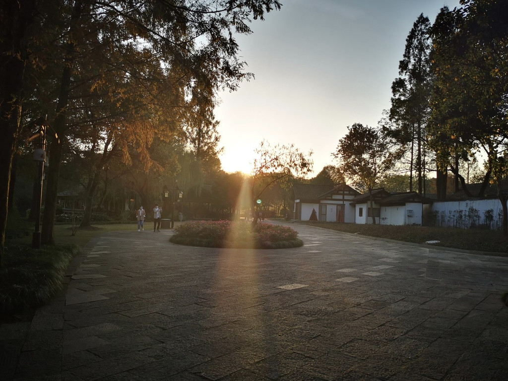 夕 阳西 下无限好,金色阳光撒入树木之中,都披上了一层金色,