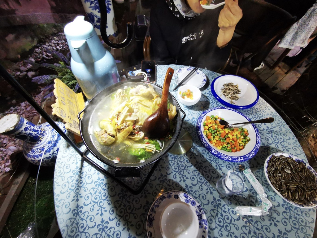 老板娘非常的热情,也是过来询问菜品好不好,这个鸡非常讲究,是他们放在山上放养的一段时间的鸡,所以这个鸡汤是非常好喝的。