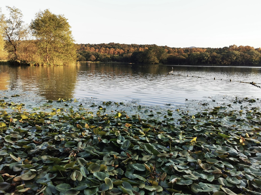 湖畔边有着红艳艳的倒影