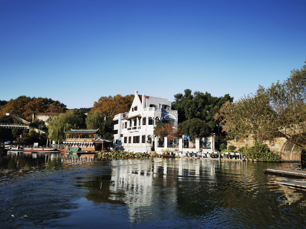 也可以乘坐画舫船穿行在湖面之中