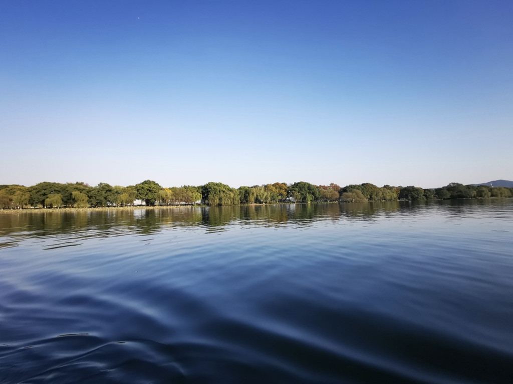 在西湖中的手撸船摇曳而来