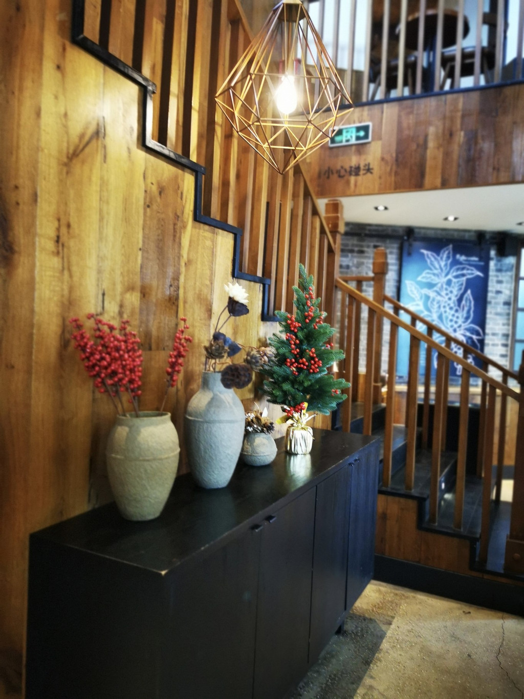 外墙为砖混结构,里面却是中式的木制结构,结合的如此完美