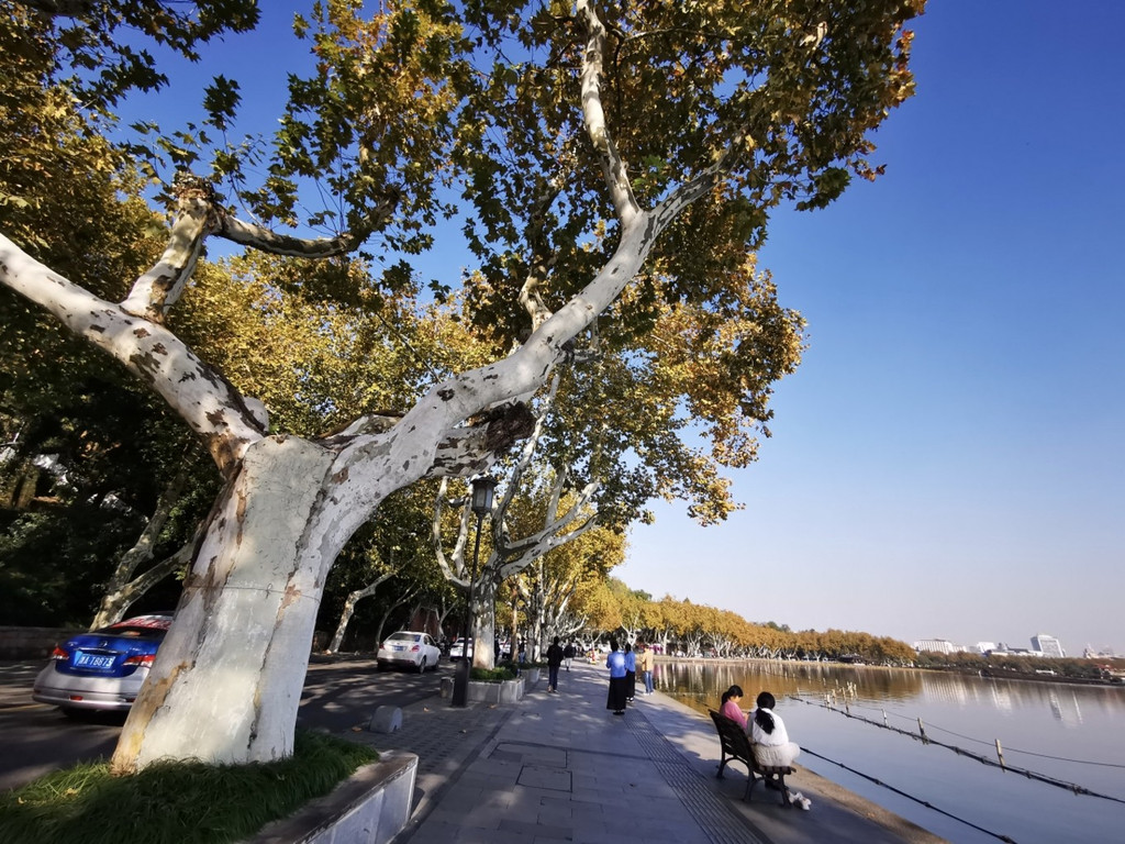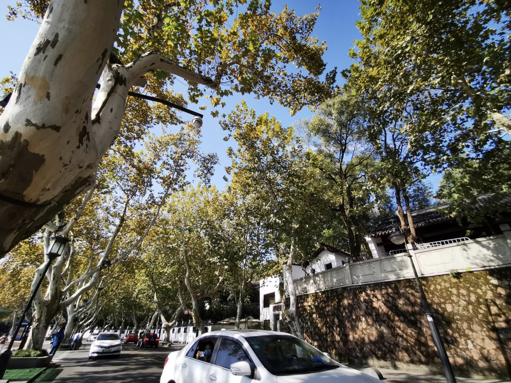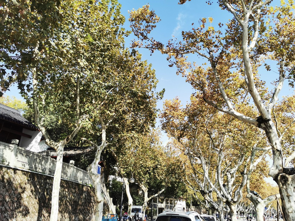 随着天气的转冷,北山路的梧桐树叶开始变黄