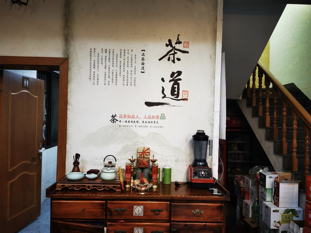大厅之中放置不少的茶具