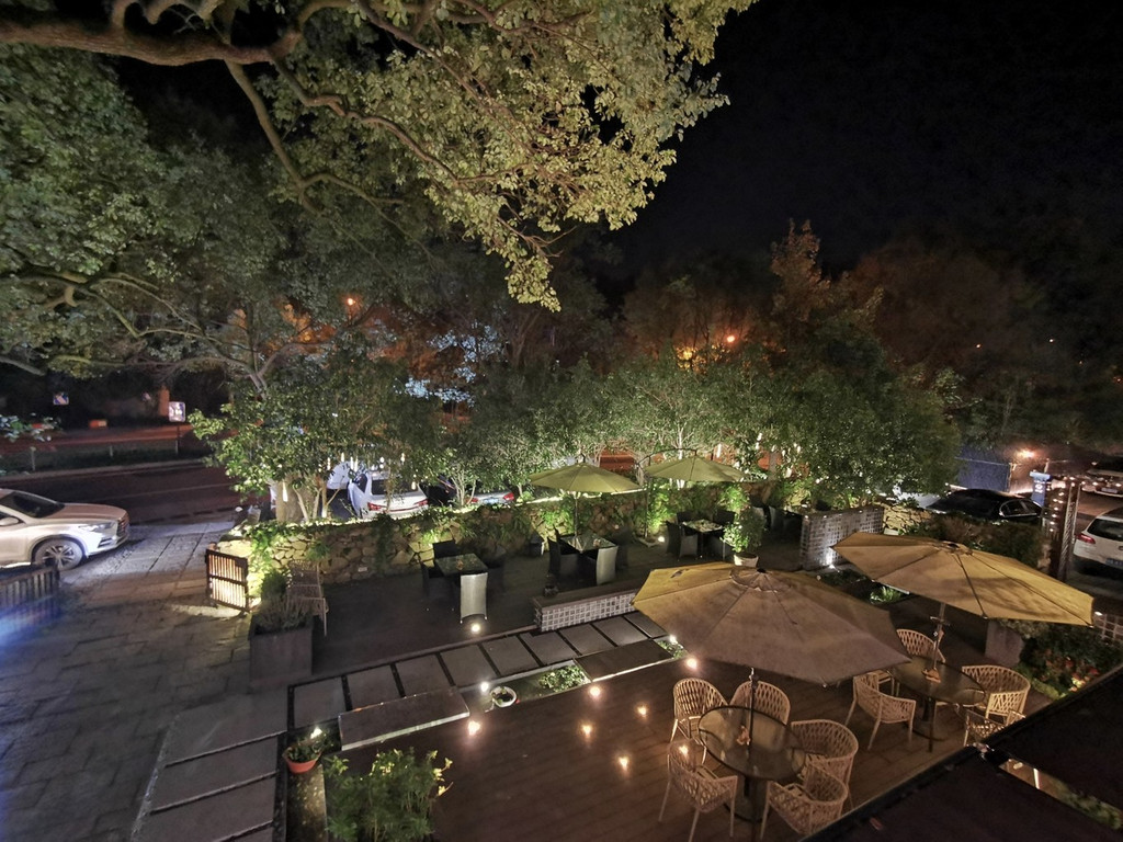 星星点点的灯光点缀四周,让庭院在夜色中有着璀璨夺目的意境