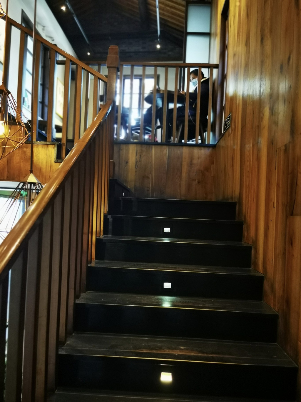 沿着长长的木楼梯而上来到二楼