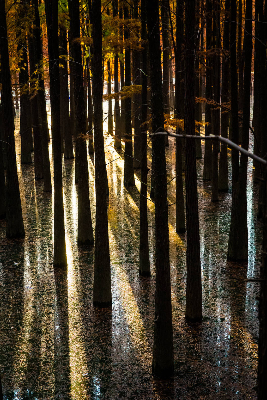 总是习惯留恋最后一抹夕阳,在回去的路上边走边看,果然,光线漏进水杉密林,一路的浓墨重彩,将秋天带回家。