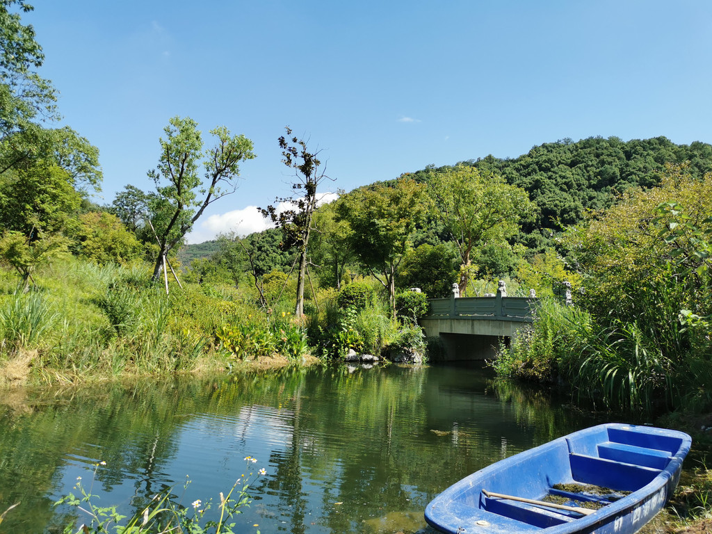 “六朝以上人,不闻西湖好”,唐朝以前杭州更知名的是明圣湖,即这边的铜鉴湖。铜鉴湖及边上风水洞、灵山、石龙山都是归属湖埠村—村子靠山依水,产茶除了生态绿茶龙井,也产红茶-九曲红梅,还有产莼菜—西湖最道地名菜之一;村里环境很好,有民宿和农家菜馆。石龙山产石灰石和杭灰大理石,目前矿山工业虽然均废弃关停,但是被破坏了的山体已经再难复原…
