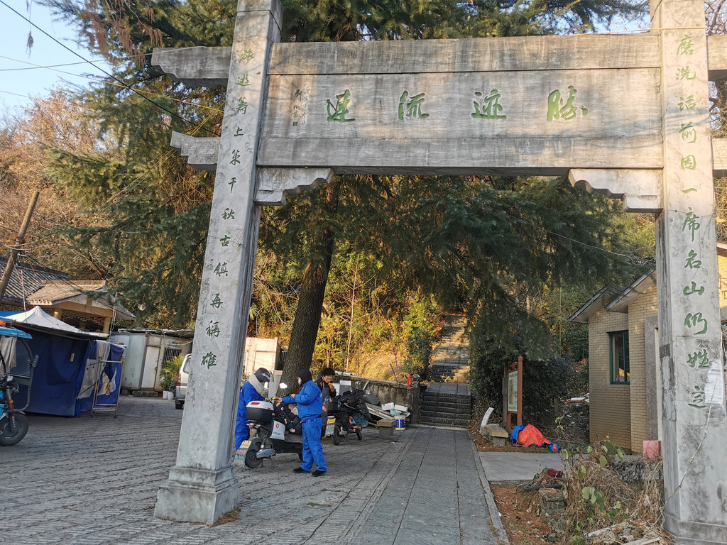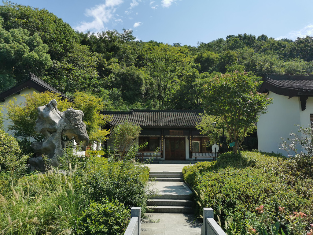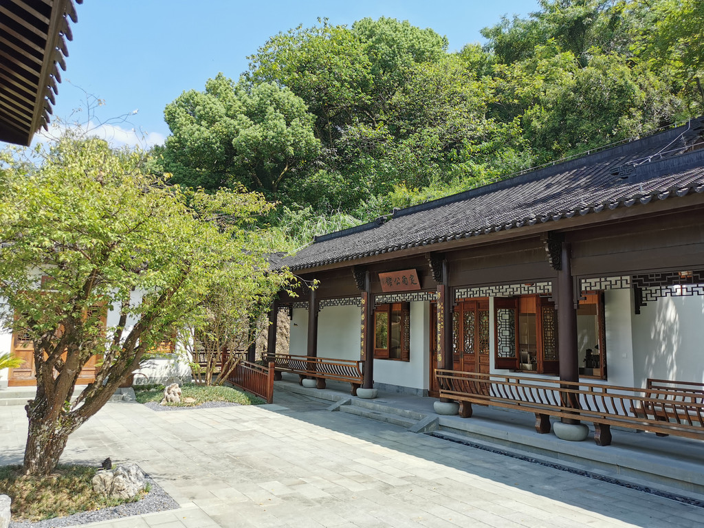 湖埠村往东沿着陆家岭翻越到公馆山下铜鉴湖里湖公园,湖边东侧山脚下有定南公馆—始建于唐代,以前客官往来的驿站,大约相当于现如今早些年的招待所;公馆山名称由来也源于定南公馆。公馆山顶可以远眺西山群山以及如意尖,翻过公馆山东向下石龙山街出口就是云栖小镇、西湖大学。