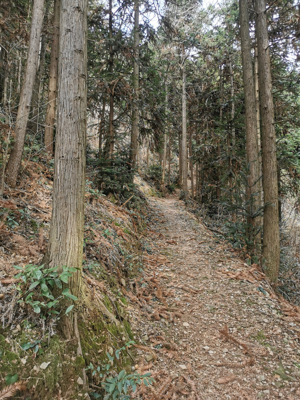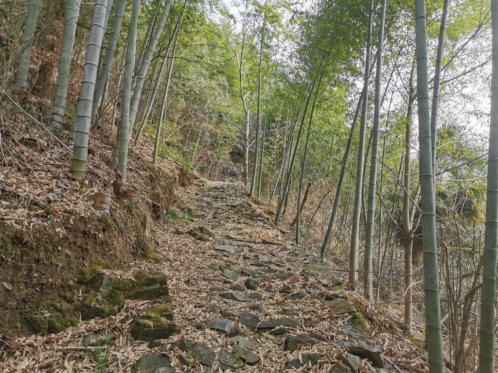 杭州山行古道很多,九仰坪森林古道被称为杭州市最美森林古道却也不算为过,至少是可算得上之一;因据说北宋苏东坡通判杭州期间,曾经穿越此道往返新登古镇(古名新城),故而今又称东坡古道。