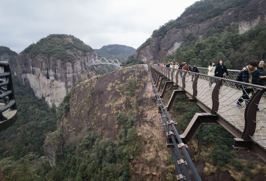 伸出山谷有几个玻璃底观景台,很是吸引人,游客可以走上观景台,换个角度感受大自然的魅力。