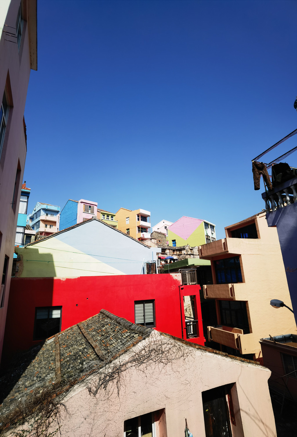 饭后,正式踏入小箬村。村庄里,石头建的房屋外墙,被刷成了色彩斑斓各种不同的颜色,房屋错落有致,各种色彩随机碰撞,任意搭配。随便走走,感觉从任一个方向、任一个角落都能拍出大片。街巷间,五颜六色的台阶,把绚丽的色彩集中呈现了出来。走在村庄中,仿佛置身于梦幻般的童话世界。马卡龙的色彩冲击,给人带来身心的愉悦。