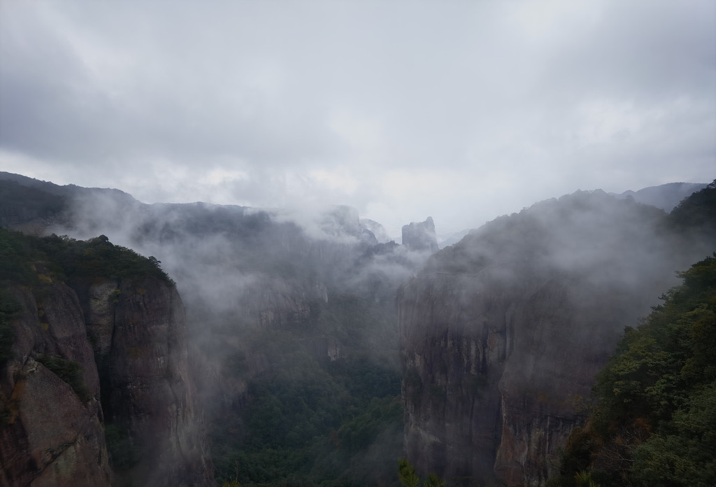 幽幽的山谷间,奇峰峻石,云雾缭绕,这里的一山一水、一石一峰都能自成一格,又交相辉映,大自然的鬼斧神工,天造地设的美景。
