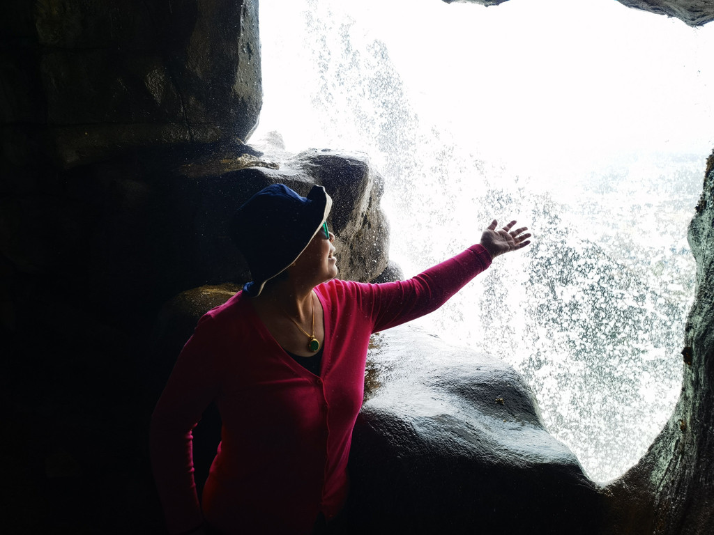 我的目标就是水帘洞,对于更高处和后面的琼台仙谷,根本不在我的计划内。当我进入了水帘洞,飞溅的水花撒落在身上,飞奔而下的瀑布触手可及,那一刻,爽极了!了却了我十年来的一个心愿:黄果树大瀑布,没有走到水帘洞里面去感触瀑布,这次完美的弥补了。