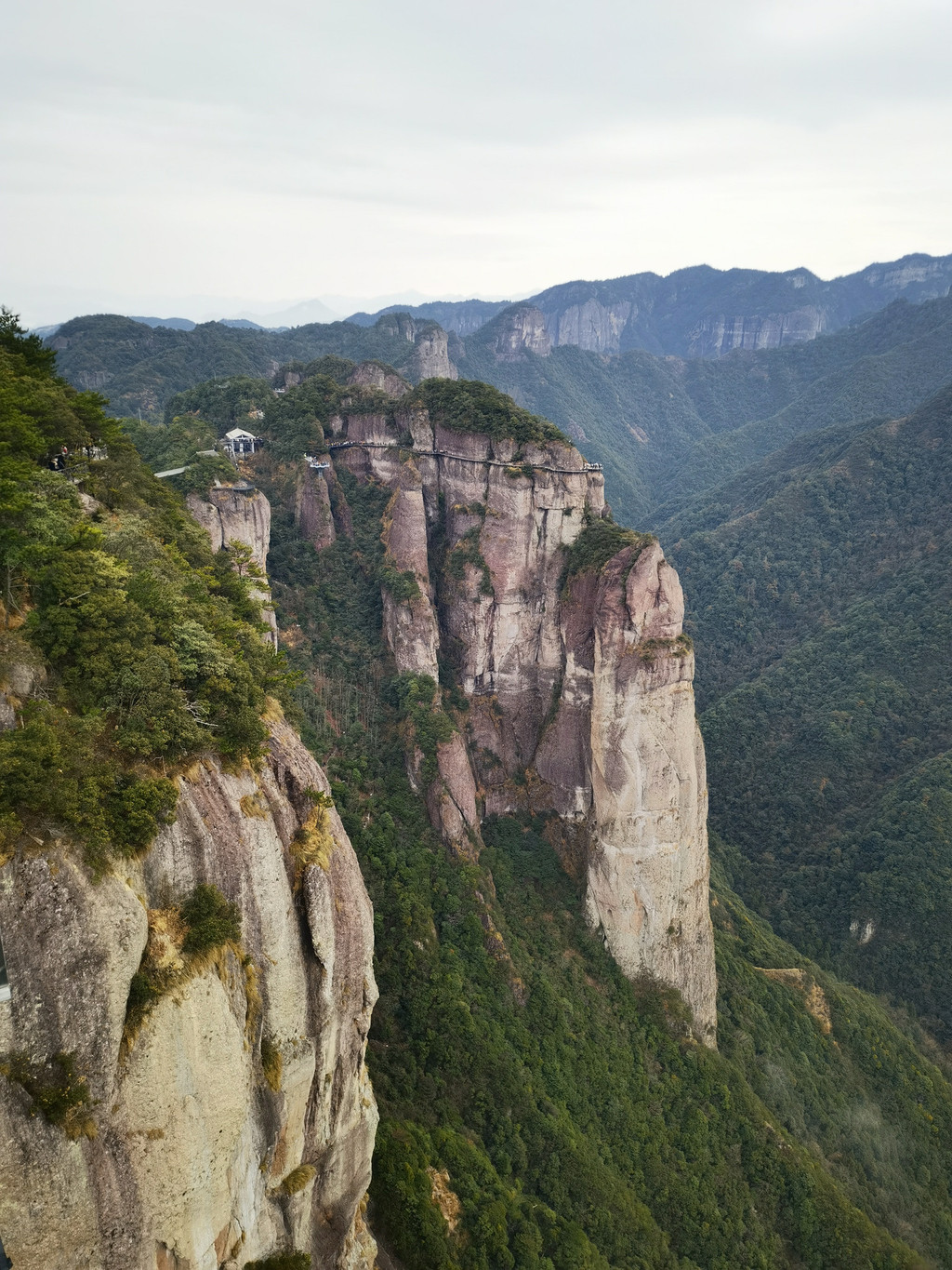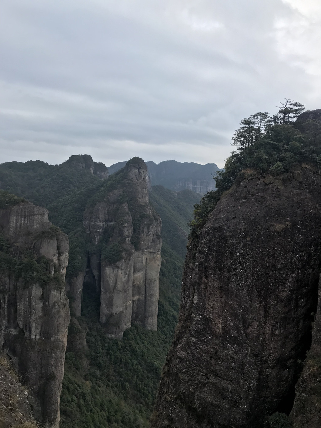 最早看见的台州的照片,是神仙居的如意桥。整体造型好似中国的玉如意,横跨于两座高山之间,下面就是万丈深渊。从远处看桥全景,很有视觉冲击感。