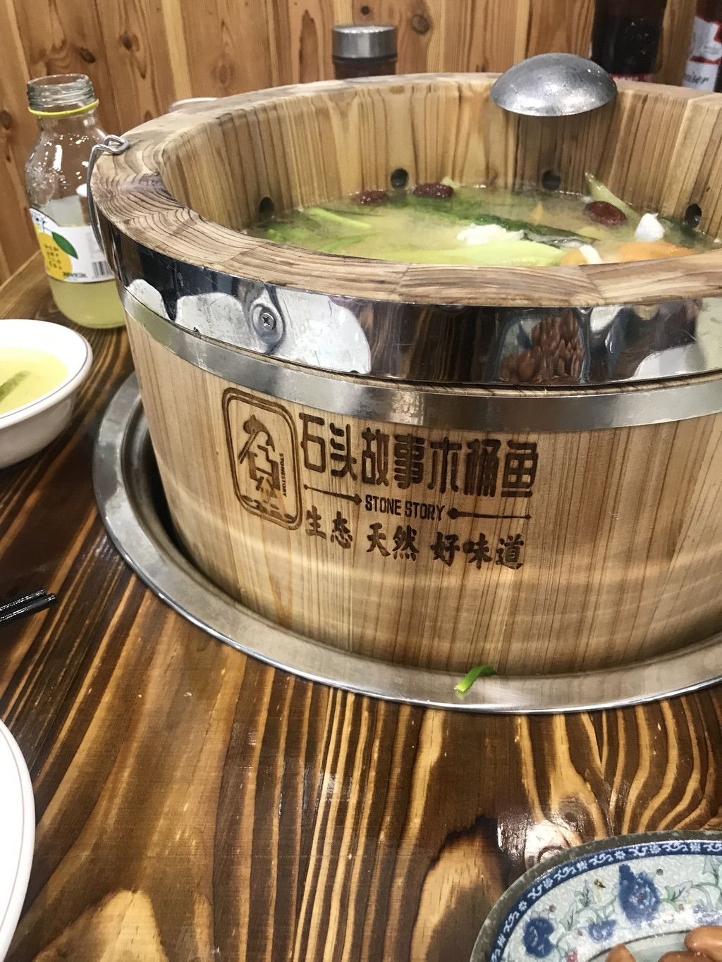 我们决定吃一顿正餐,抚慰一天的辛劳。离开紫阳街,找到了一家蒸汽鱼锅,鱼汤鲜美,鱼肉滑嫩,味道不错。饭后回到酒店附近,水果摊位、饭馆和其他店铺都已经关门了,晚上八点后,饭馆真是不营业的,看来,在台州,要按时吃饭。