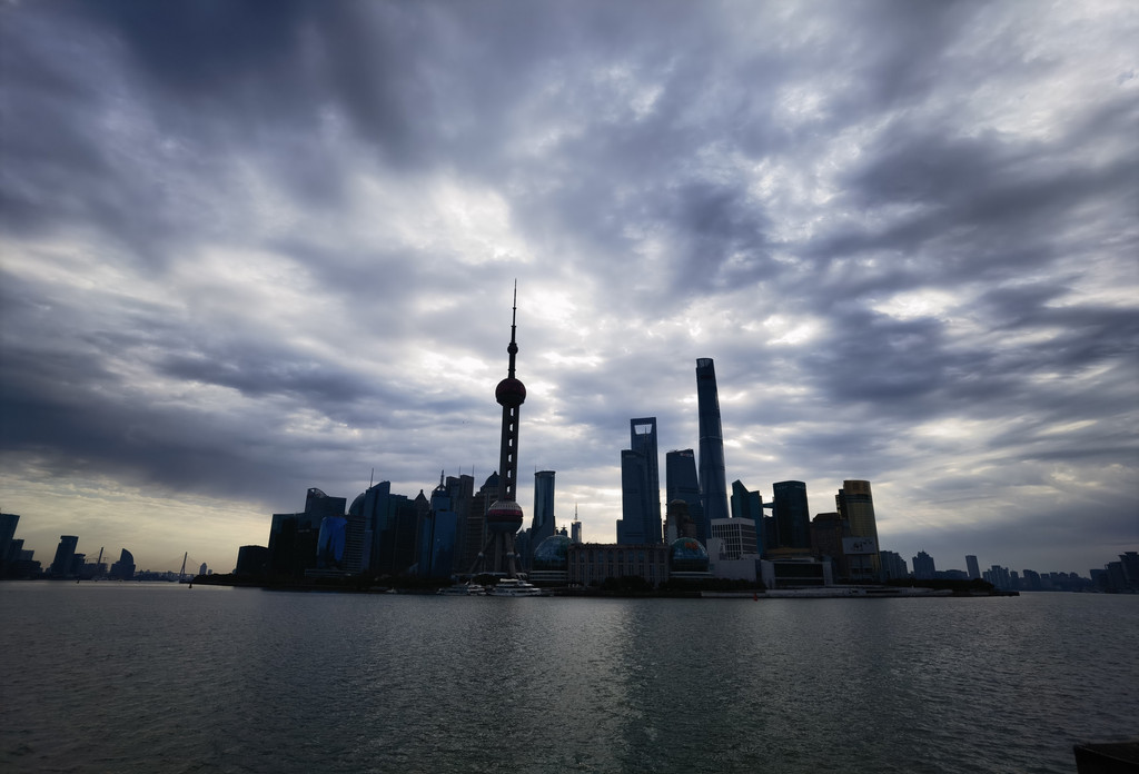 天气晴朗,蓝蓝的天空,把东方明珠和陆家嘴三件套等现代感十足的景观,衬托得多了几分柔美。
