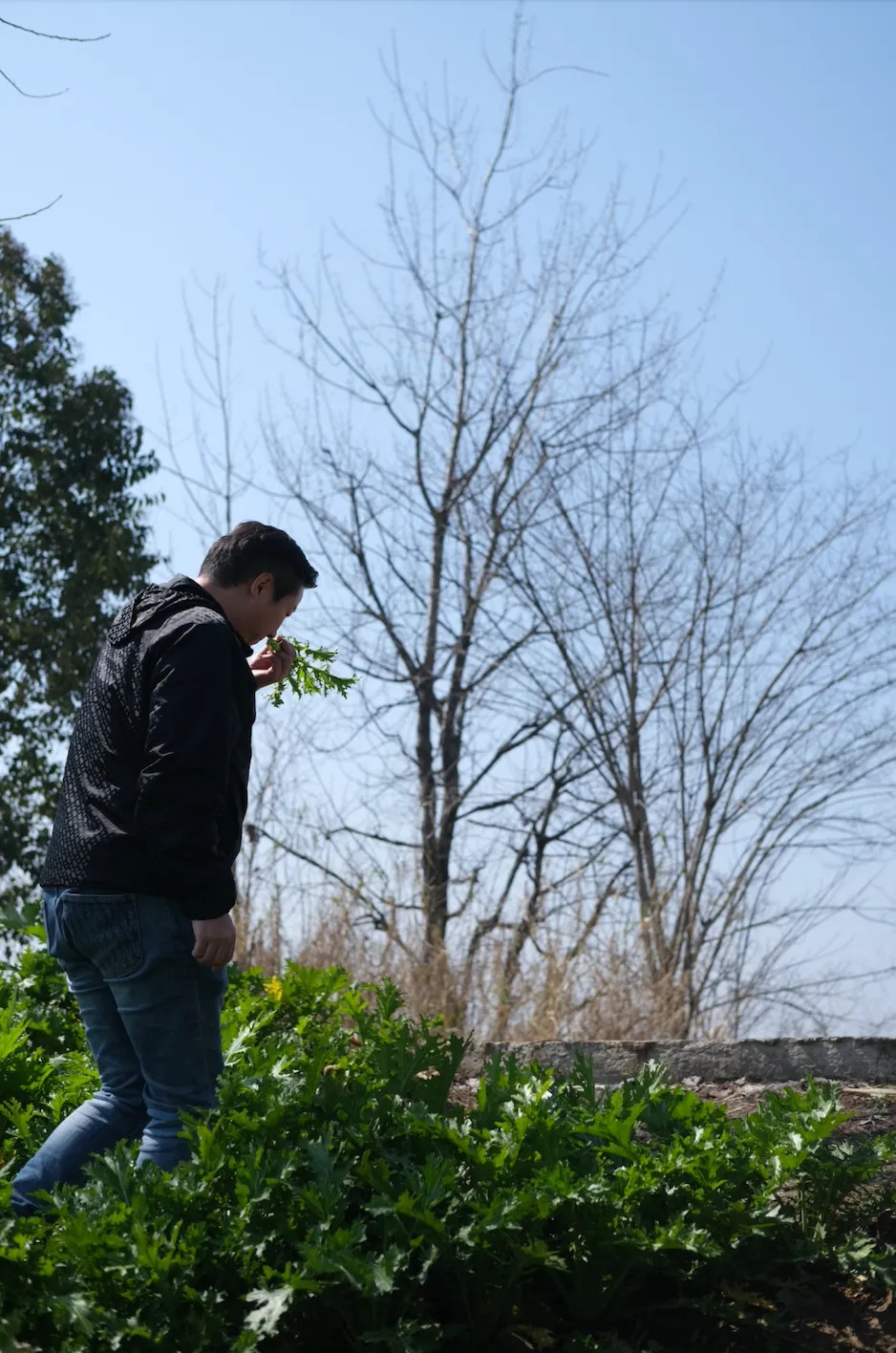 看着花花阿姨,程郁主厨跃跃欲试。我们山里闲逛找马兰头和荠菜的时候,他已经默默成了花花阿姨的“小工”。