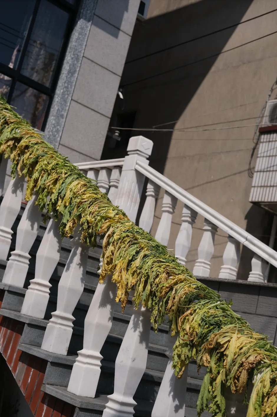 路上我还偷拍了别人家晒的芥菜,请花花阿姨鉴定,“应该就是普通芥菜,叶子和我家差不多,芥菜品种不同,叶子厚一点,吃起来更鲜。”