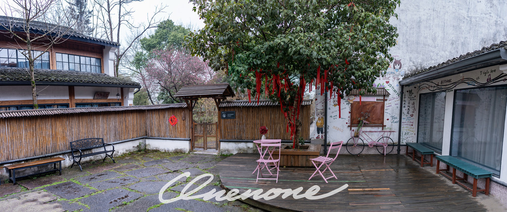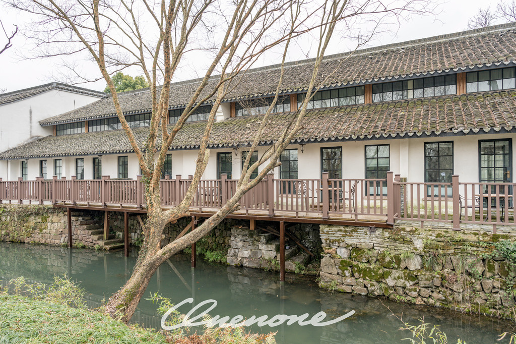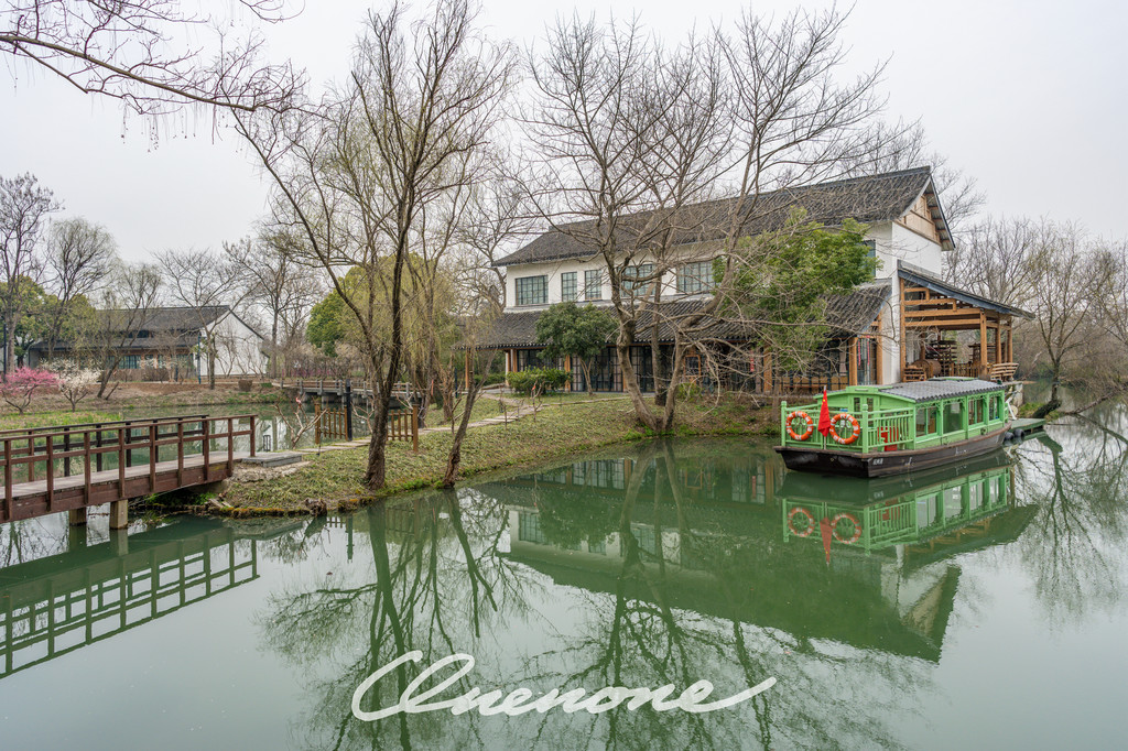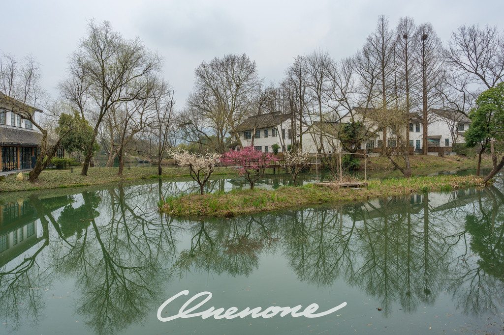 十里芳菲是一个每个月都有不同鲜花盛开的自然度假村落,由青荇度、一曲烟葭、寻梅渚、十里洲、梨花坞和丁香圃共6个小岛组成,从村头到村尾,刚好十里。岛上分布着大大小小共93间客房,每间客房基本都带有自己的临水花园,因此统称为芳扉合院。