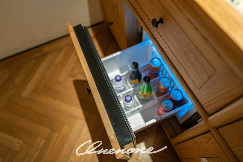 卫浴洁具:洗漱池、电动马桶、浴缸品牌东陶TOTO,水龙头、淋浴花洒品牌汉斯格雅Hansgrohe,选品精益求精,注重造型细节和真实使用体验。部分客房从最高级的桧木中严选木料,打造出触感舒适、兼具功能性和设计感的木质浴缸,洒一把玫瑰色的喜马拉雅盐,温水入浴,褪去一身疲惫,助力身心恢复。