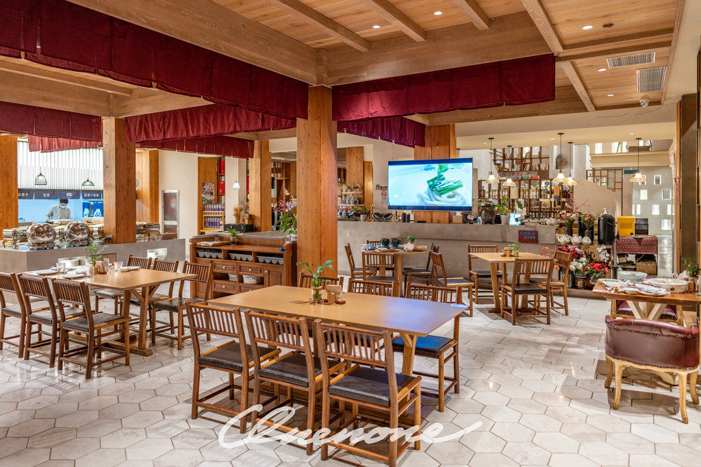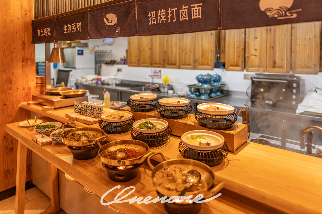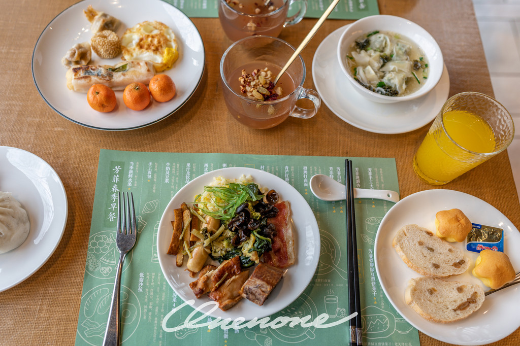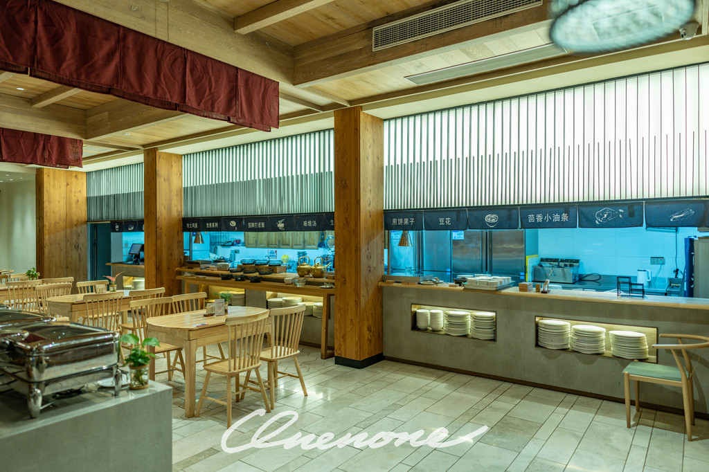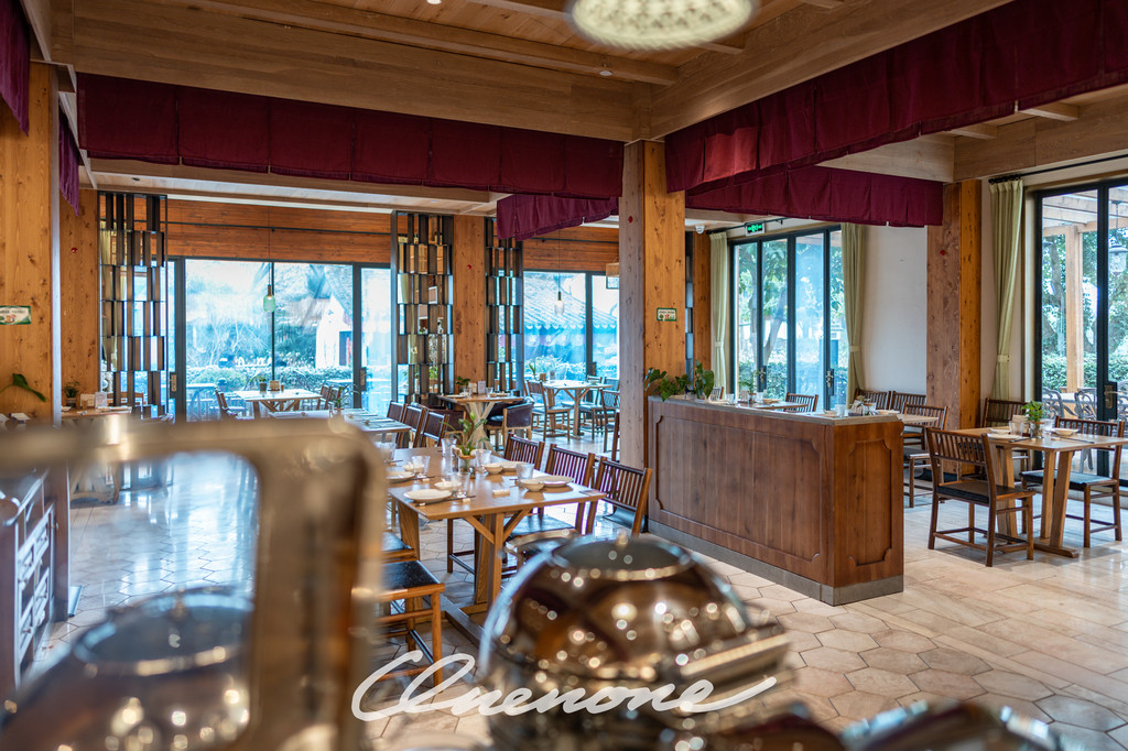 芳菲食堂主营中餐,以杭帮菜为特色。室内装修色调朴素大方,充满传统家庭的浪漫风格和温馨情调,自助早餐品种丰富多样,厨师精心挑选当地原生态食材,讲求时令,注重营养,满足国内外宾客口味差异。主要菜品:现调招牌桂花藕粉、现磨杏仁露、煎土鸡蛋、招牌打卤面、生煎包、生煎饺子、味增汤、煎饼果子、豆花、茴香小油条、手工大肉包、手工面包、新鲜水果、低脂沙拉、安佳牛奶。桂花藕粉浓稠香甜,打卤面浇头丰盛,大肉包皮薄肉厚,特别推荐。营业时间:早餐0730-1030,午餐1130-1400,晚餐1730-2100。