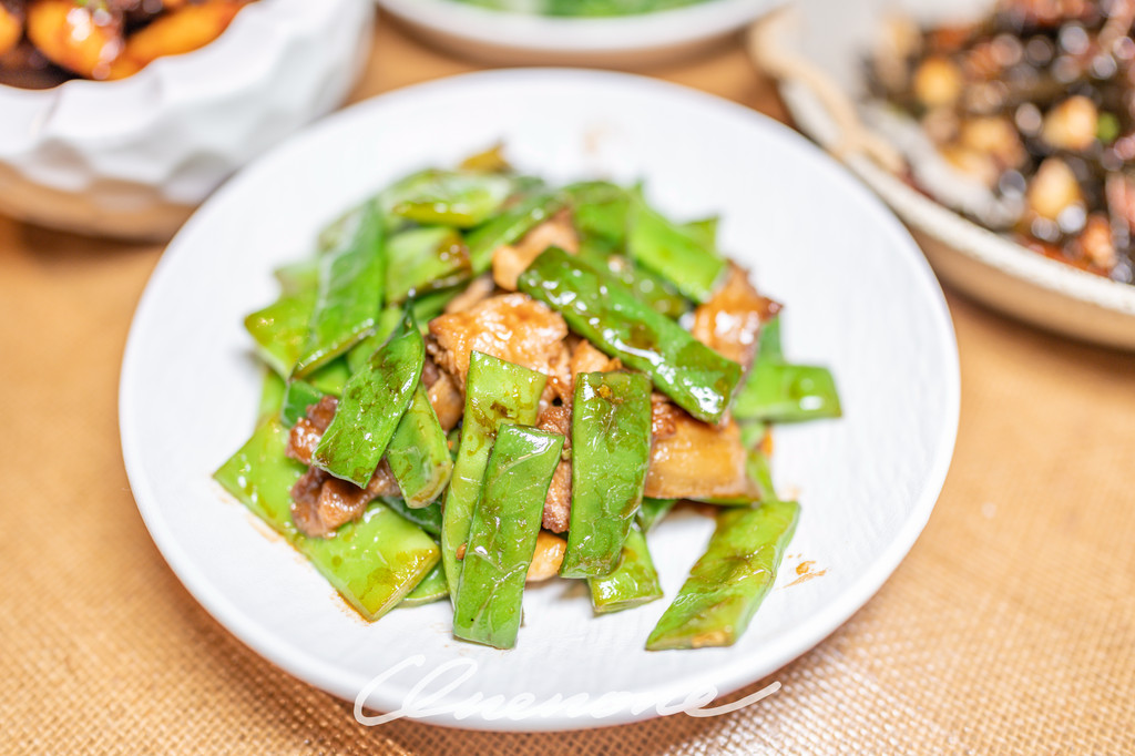 芸豆炒三层肉:芸豆清脆,肉片肥瘦相间,香浓下饭。