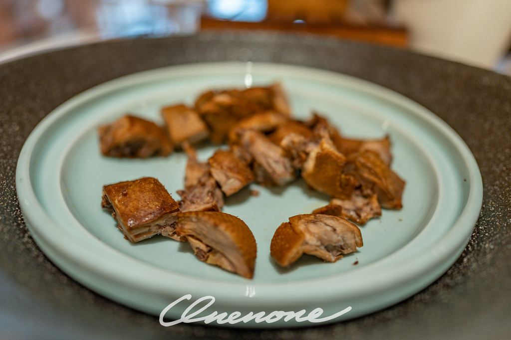 金蒜茶香海山骨:热油烹炸,茶香、蒜香混合着肉香,口感香酥,层次丰富。