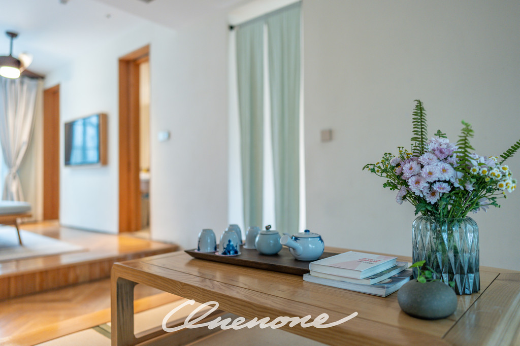 客房视野:无论大床房、双床房、套房或者复式房型,十里芳菲的客房都自成一体,大多带有独立的院落和亲水园景。清新素雅的装修风格,简约时尚的装潢设计,宽敞通透的室内布局。